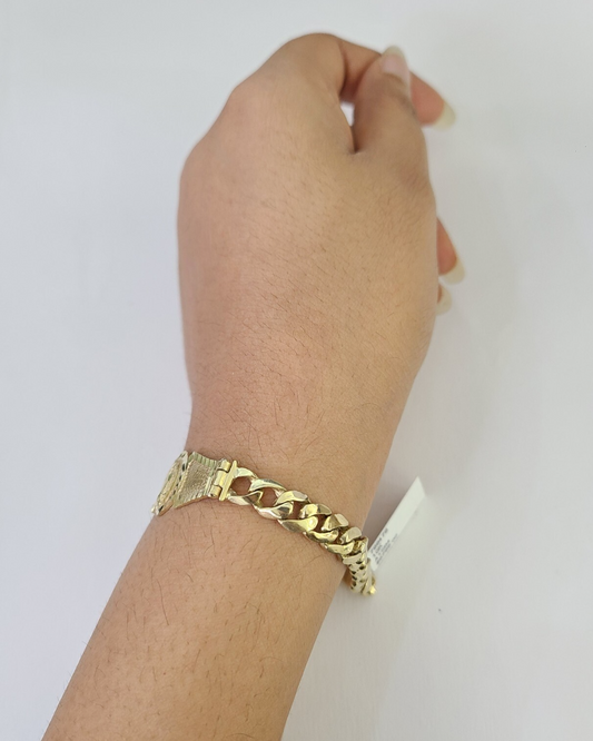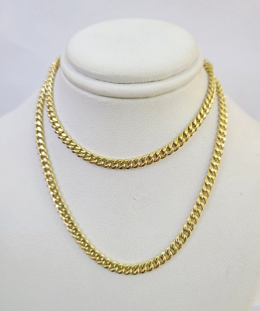 10k Real Gold Miami Cuban Link Chain H Initial Charm Pendant 2.5mm SET Necklace