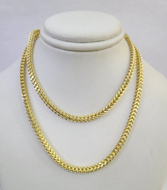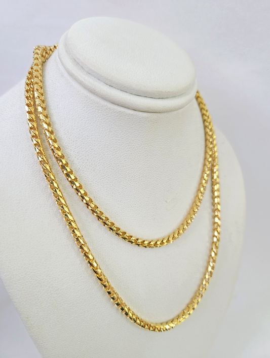 Real 10k Gold Franco Chain Pendant Necklace F Initial Charm SET 2.5mm 16"-26"
