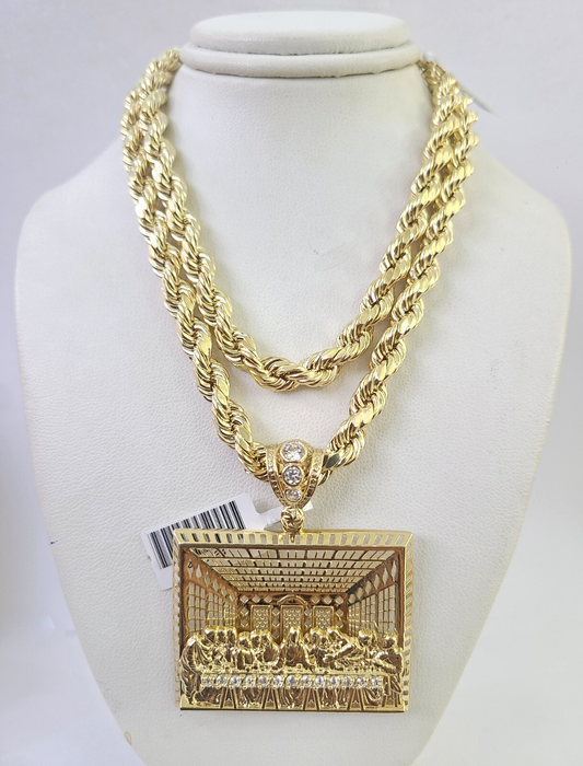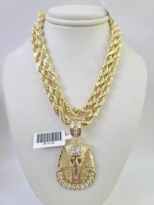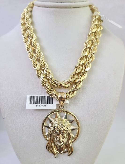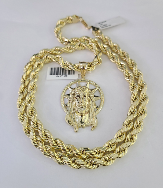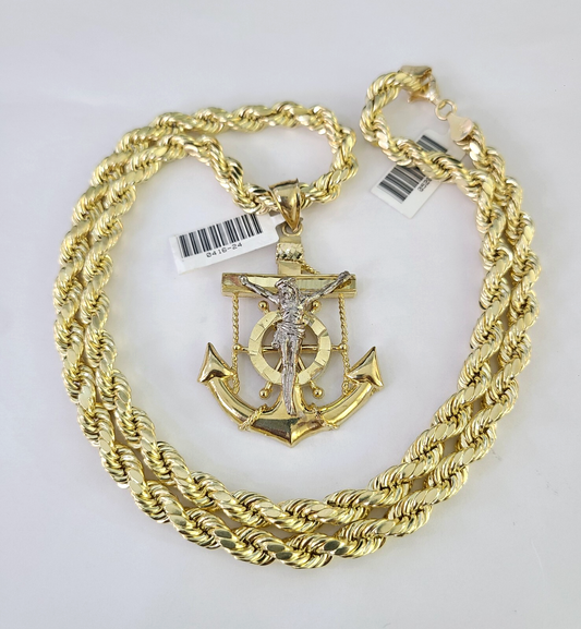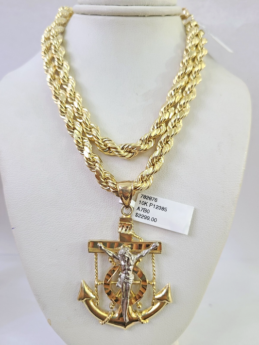 Real 10k Rope Chain Necklace Cross Charm Pendant Set 5mm 20"-30" Gold