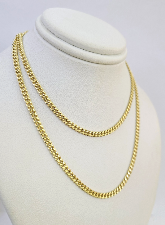 Real Gold 10k Miami Cuban Link Chain F Initial Charm 2.5mm Pendant SET Necklace