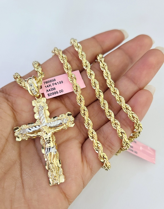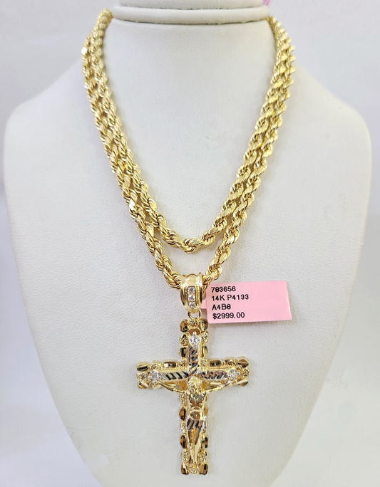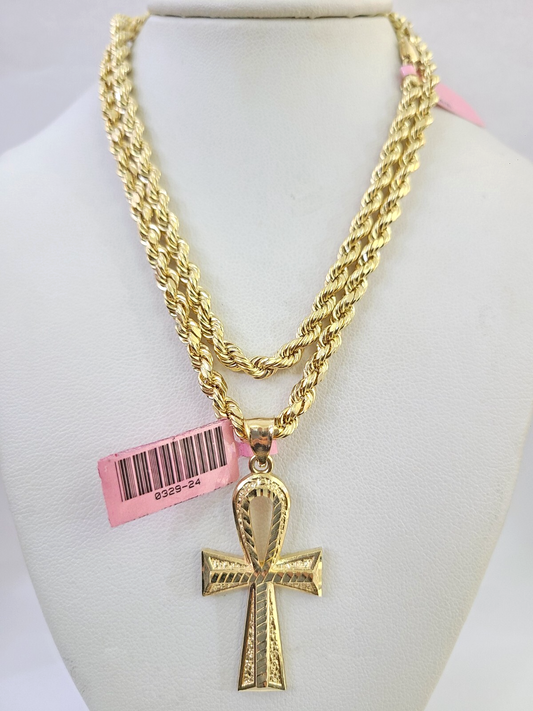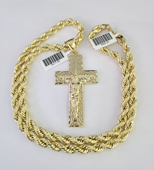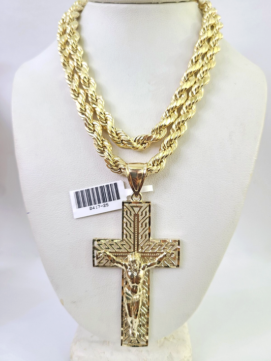 Real 10k Rope Chain Cross Charm Necklace Pendant Set 5mm 20"-30" Gold