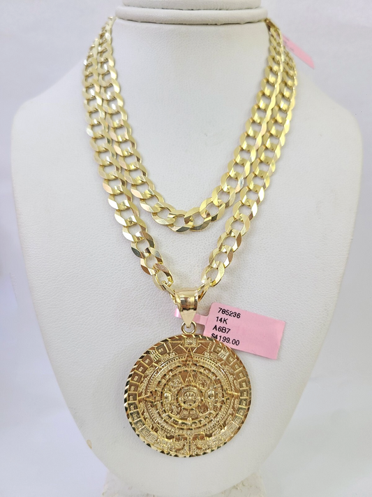Real Gold 10k Miami Cuban Link Chain Pendant SET C Initial Charm Necklace 2.5mm