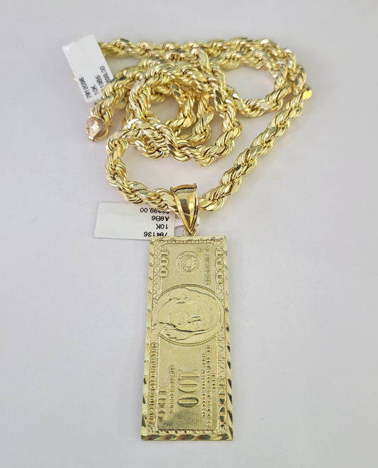 Real 10k Rope Chain 3mm 18"-28" Necklace Nugget H Initial Charm Set Pendant Gold