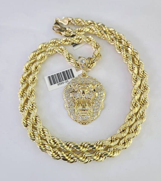 Real 10k Chain Pendant SET Rose Trio Gold Charm Miami Cuban Link Necklace 2.5mm