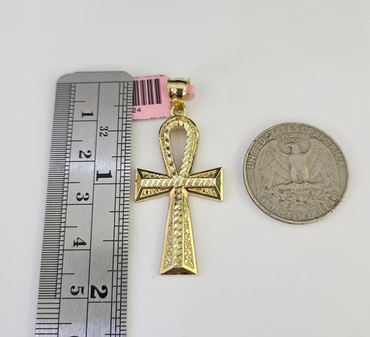 Real Gold 10k Chain Pendant SET Cross Charm Miami Cuban Link Necklace 2.5mm