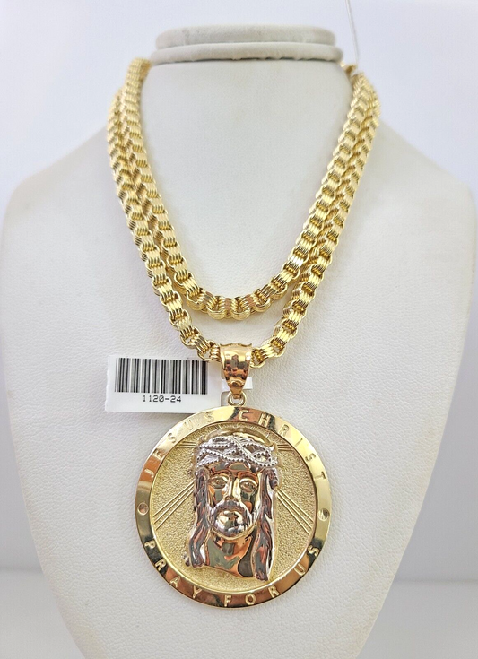 Real 10k Gold Byzantine Necklace Jesus Christ Charm SET Chain 20"-30" 4mm