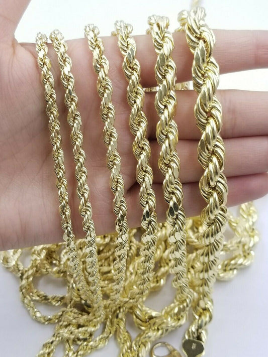 10k Yellow Gold Rope Chain Necklace 18"-30" Men Women 4mm-10mm Real Gold Hollow