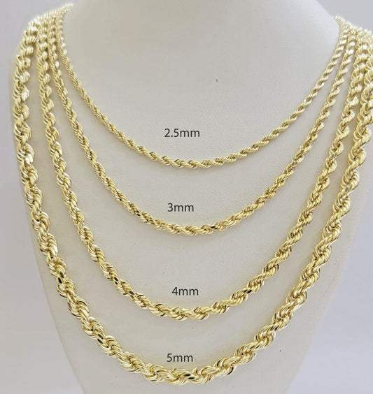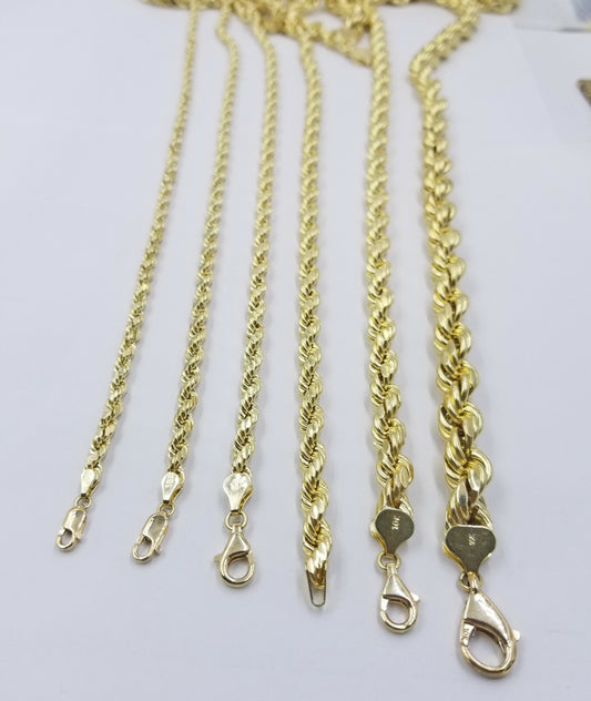 Real 14k Yellow Gold Rope chain necklace 2.5mm 3mm 4mm 5mm 18-26 Inch Men women