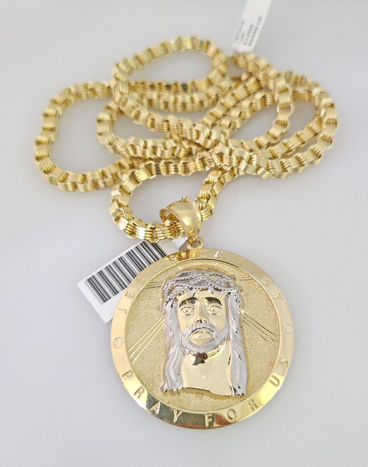 10k Gold Miami Cuban Chain Jesus Head Charm Pendant 3mm 18-28 Inch Necklace Set