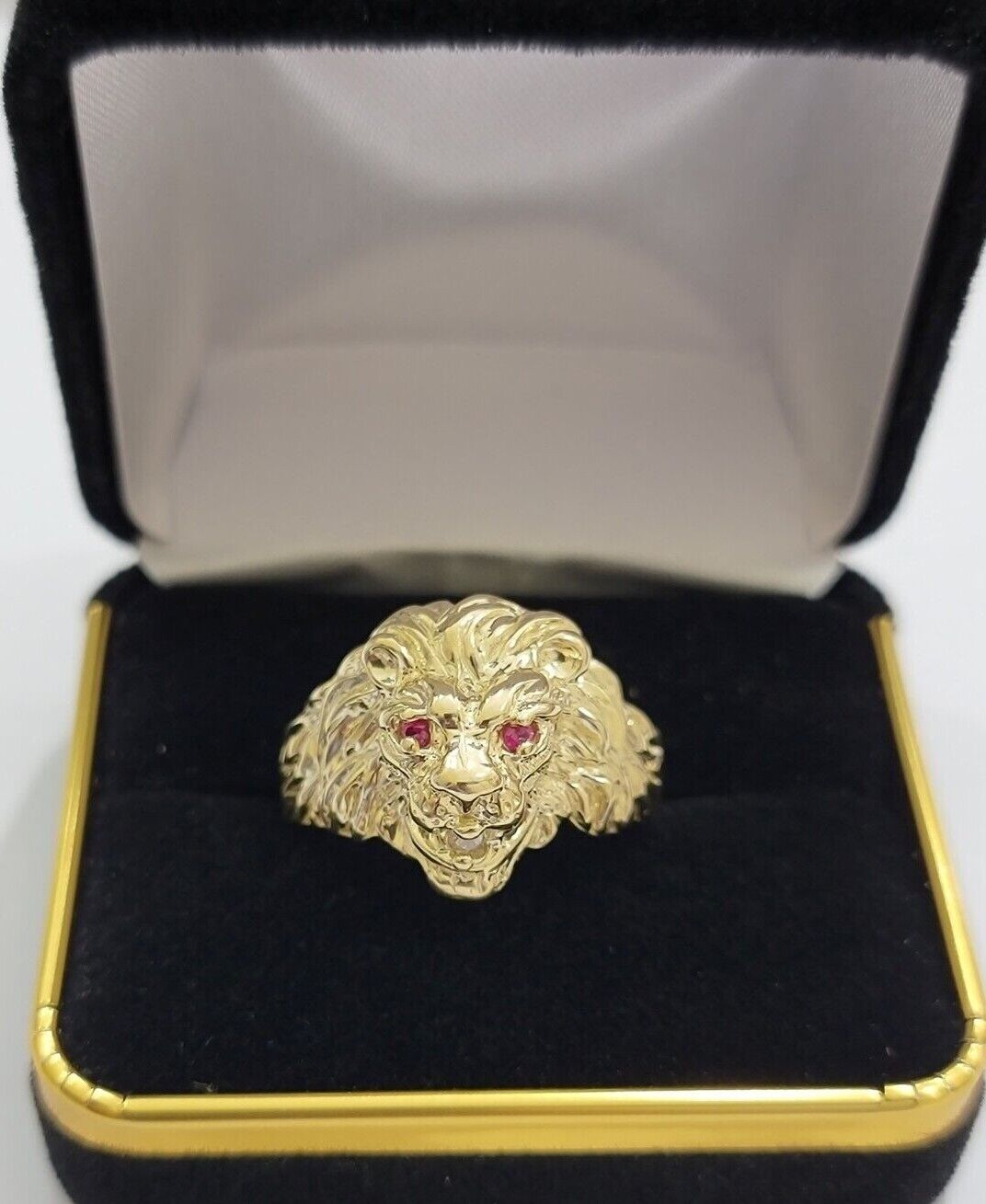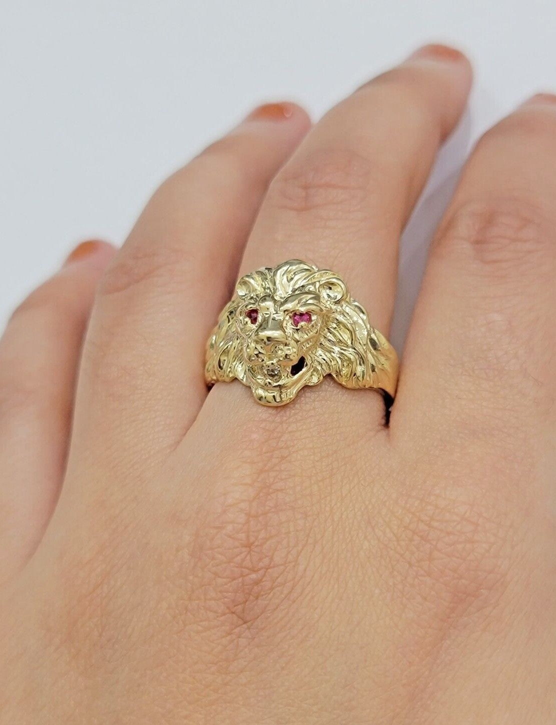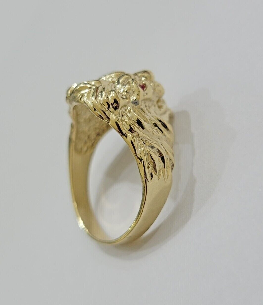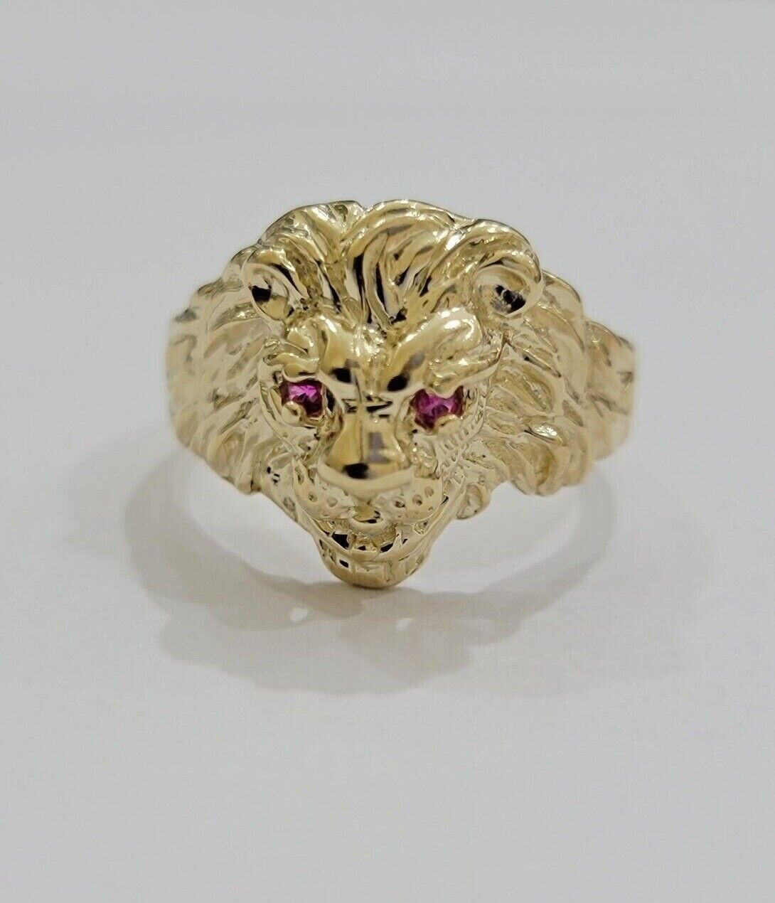 10k Solid Yellow Gold Men's Lion Roaring Ring Casual Style 10kt Red Eye New SALE Size: 6 7 8 9 10 11&12