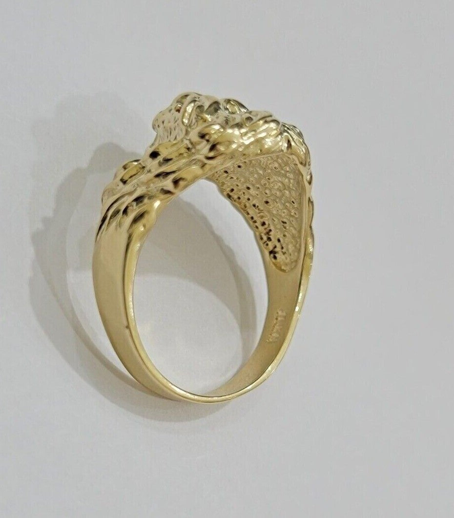 10k Solid Yellow Gold Men's Lion Roaring Ring Casual Style 10kt Red Eye New SALE
