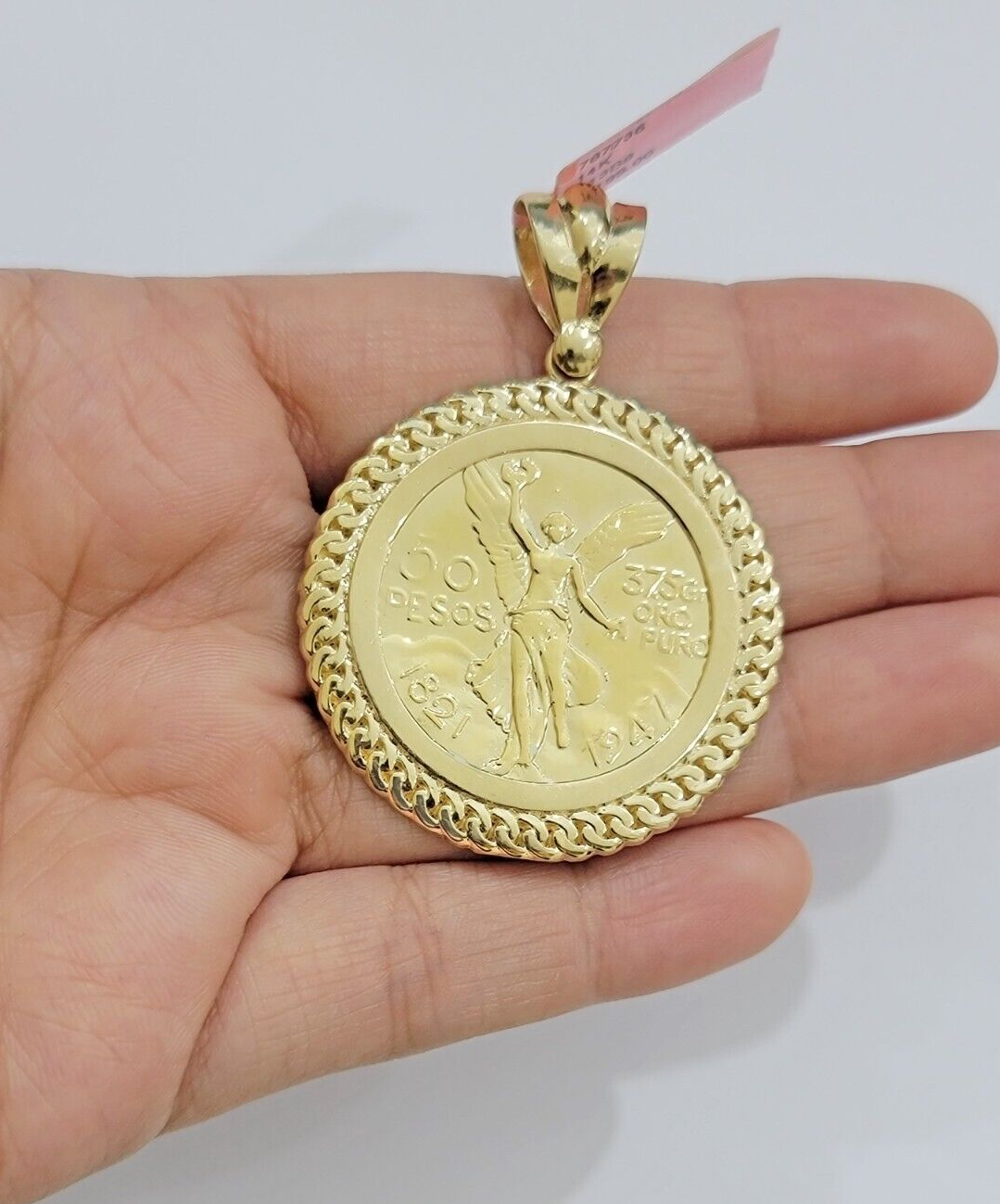 14kt Yellow Gold 1947 Mexican Centenario 50 Gold Pesos Copy Coin With Bezel SALE