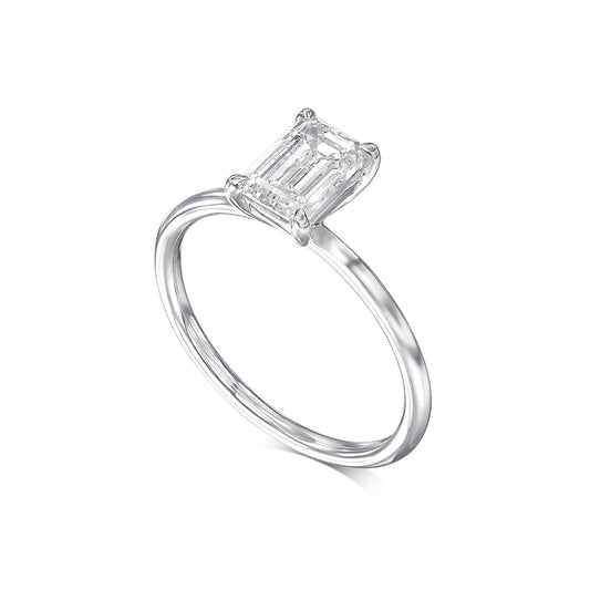 1/2 Ct Emerald Shape H VS Lab Created Diamond Engagement Ring 14k White Gold