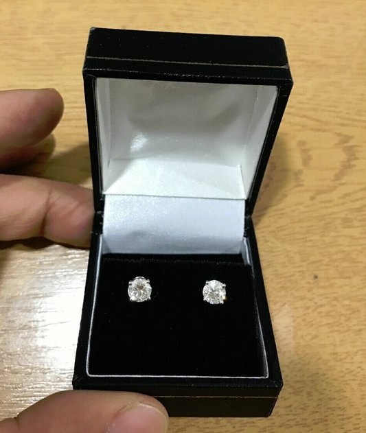Real 1CT Round Brilliant Cut Diamond Stud Earring In 14K Gold Lab Created VS Dia