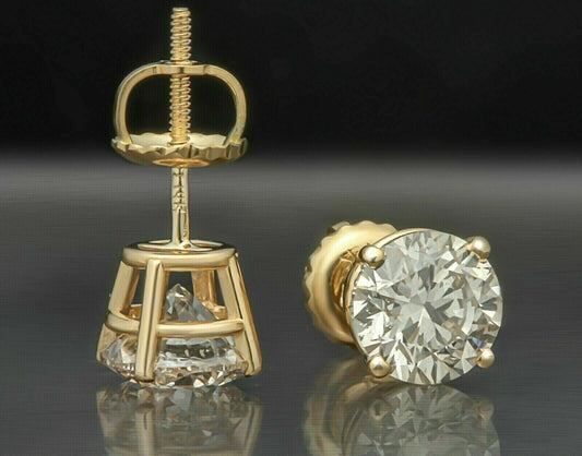 Real 2CT Round Brilliant Cut Diamond Stud Earring In 14K Gold Lab Created VS Dia