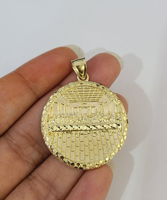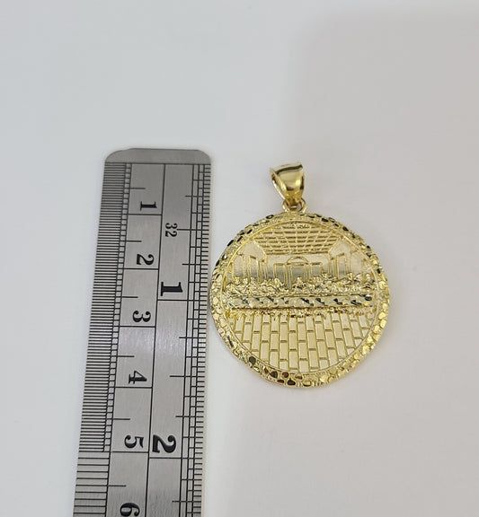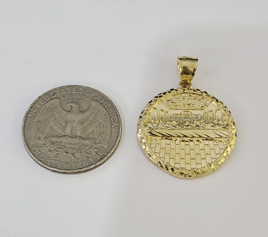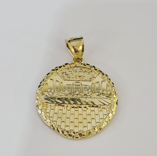 10k Yellow Gold Franco Chain Necklace Last Supper Charm Pendant 3mm 20"Inch 10k.