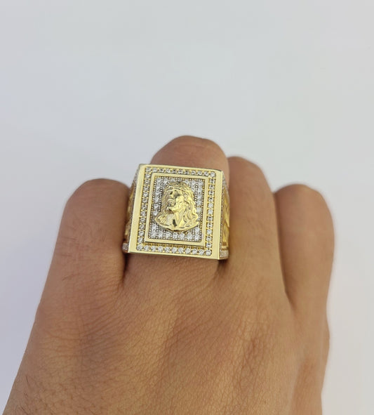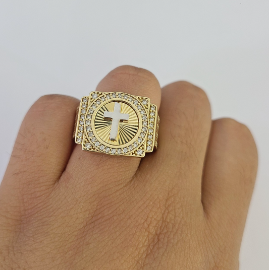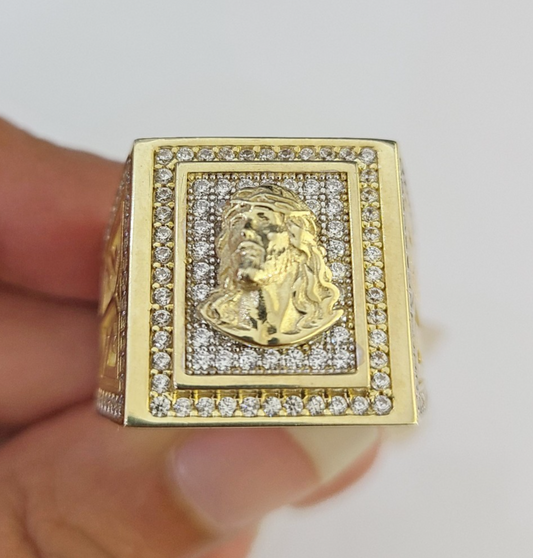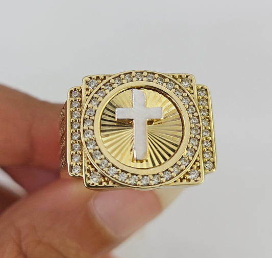 10k Yellow Gold Jesus Cross Charm pendant 4" Inch Men With Stone Christmas Sale.