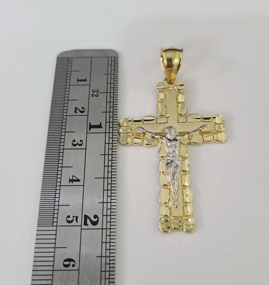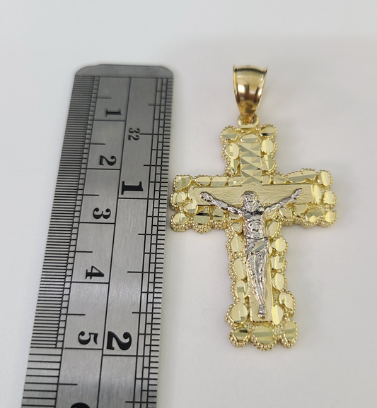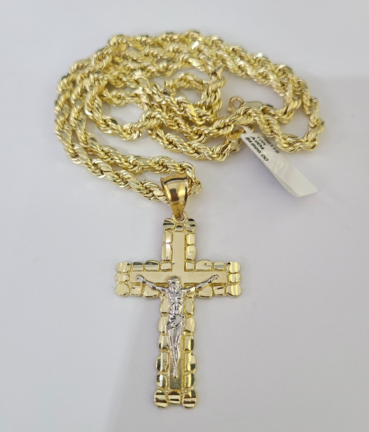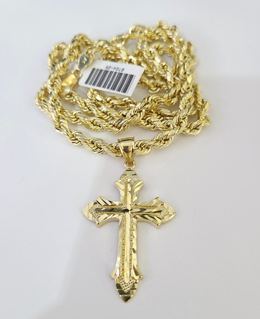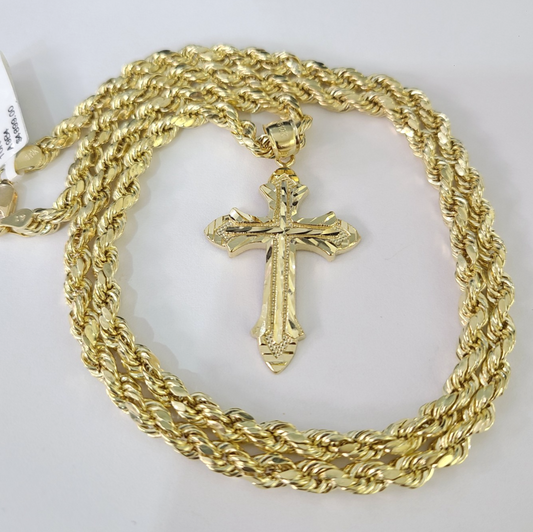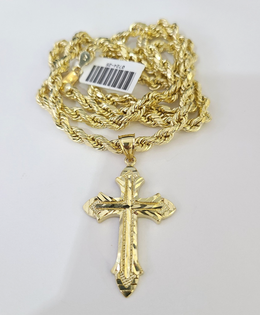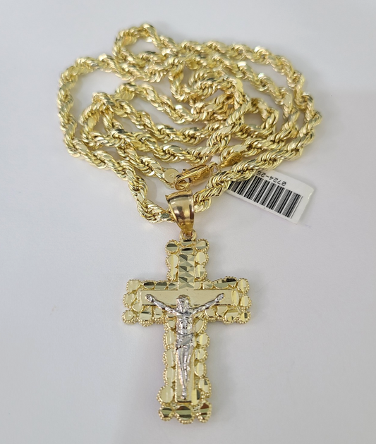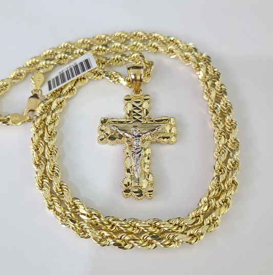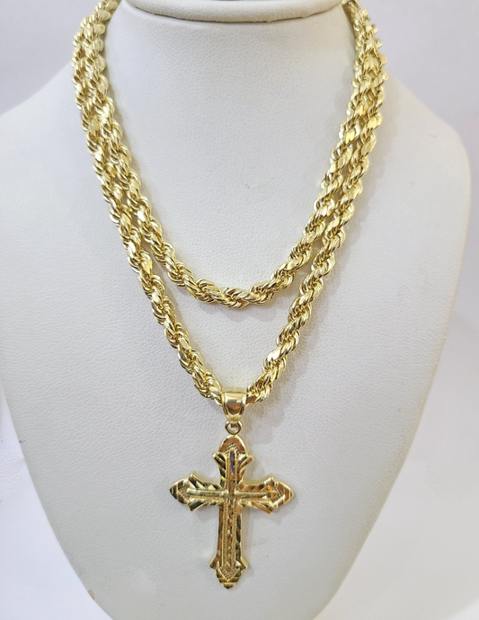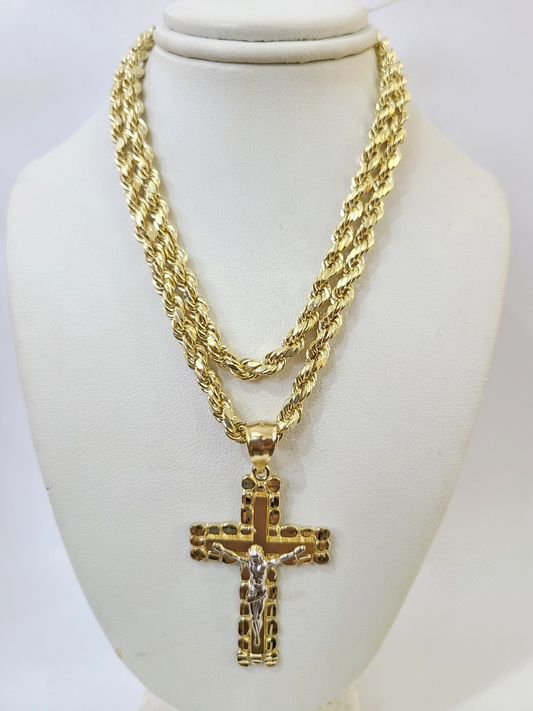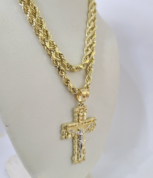 Real 10k Gold Rope Chain Jesus Cross Charm Pendant Set 18-28" inch 6mm Necklace