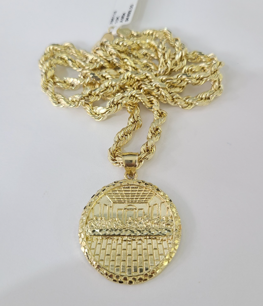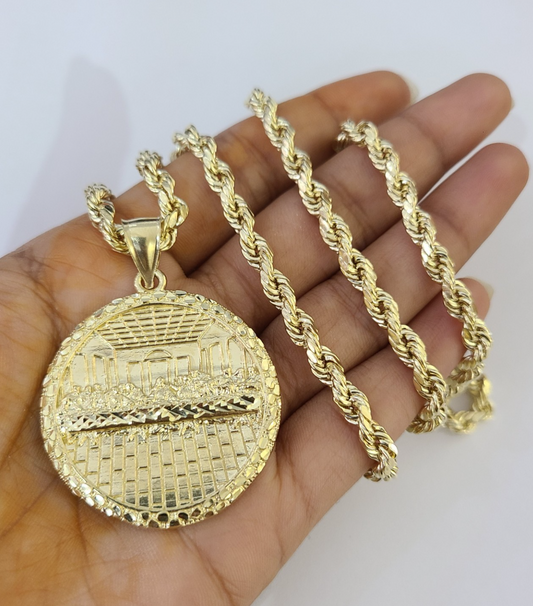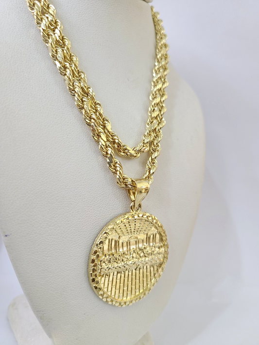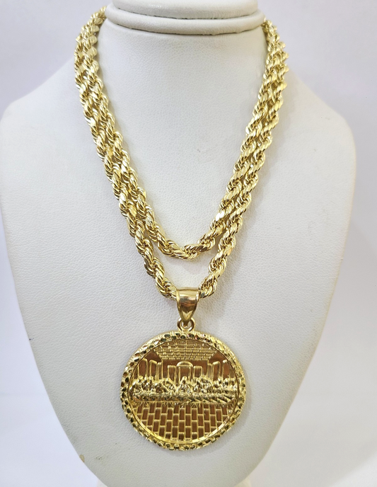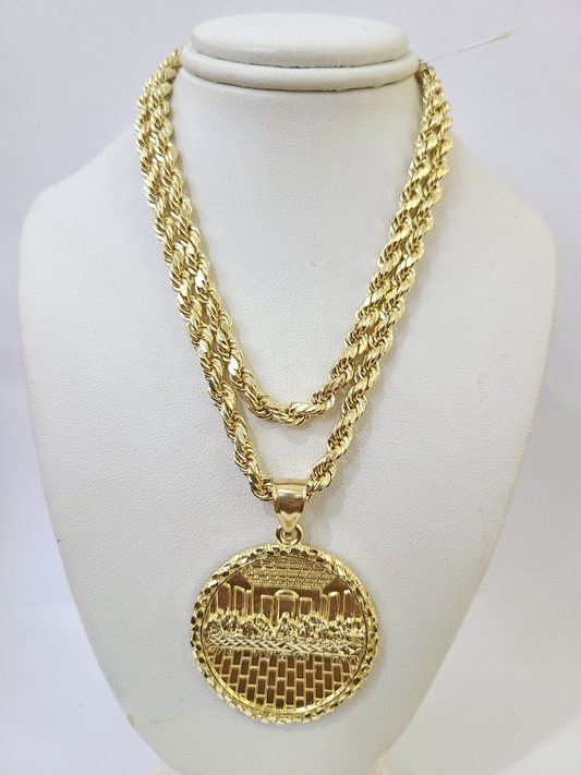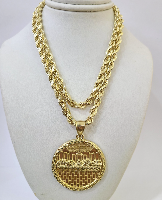 REAL 10k Yellow Gold Rope Chain Last Supper Charm Pendant SET 3mm Necklace 18-28