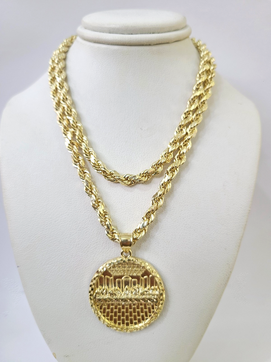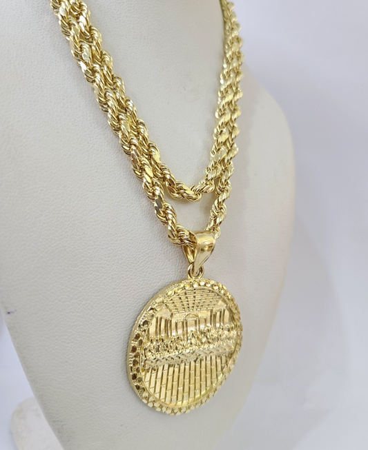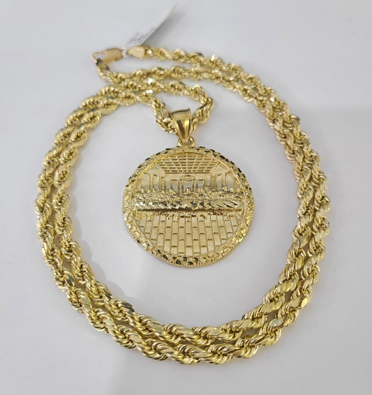 10k Gold Rope Chain Last Supper Charm Pendant Set 18"-28" inch 2.5mm Necklace