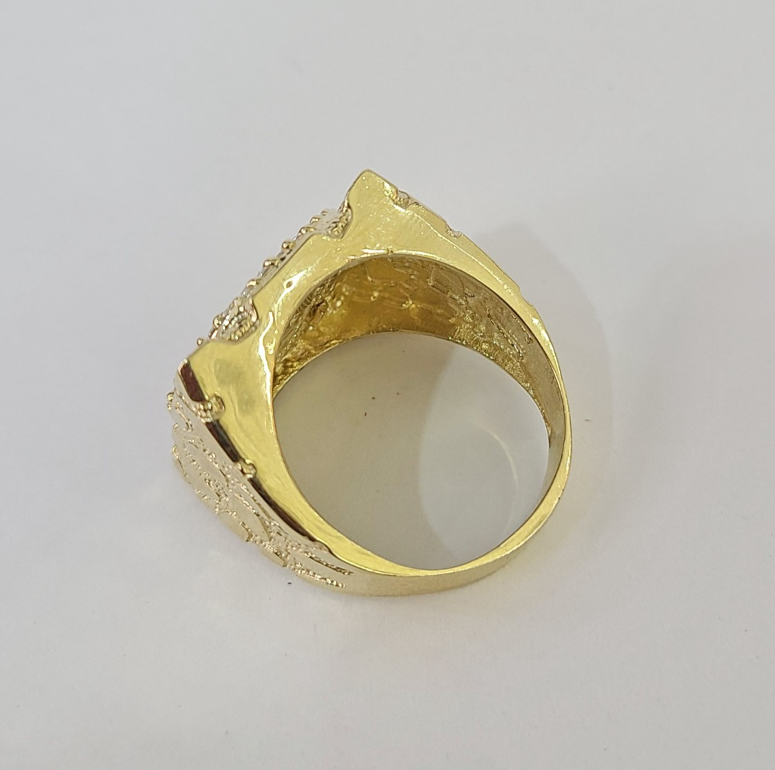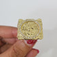 We present You with This Absolutely Stunning Real 10k Yellow Gold 50 Pesos Coin Centenario Ring . It has a detailed cut with a very good finish. These Beautiful Ring will not tarnish, discolor, or fade because they are Pure 10K Gold. Please feel free to contact us if you have any queries regarding the item.