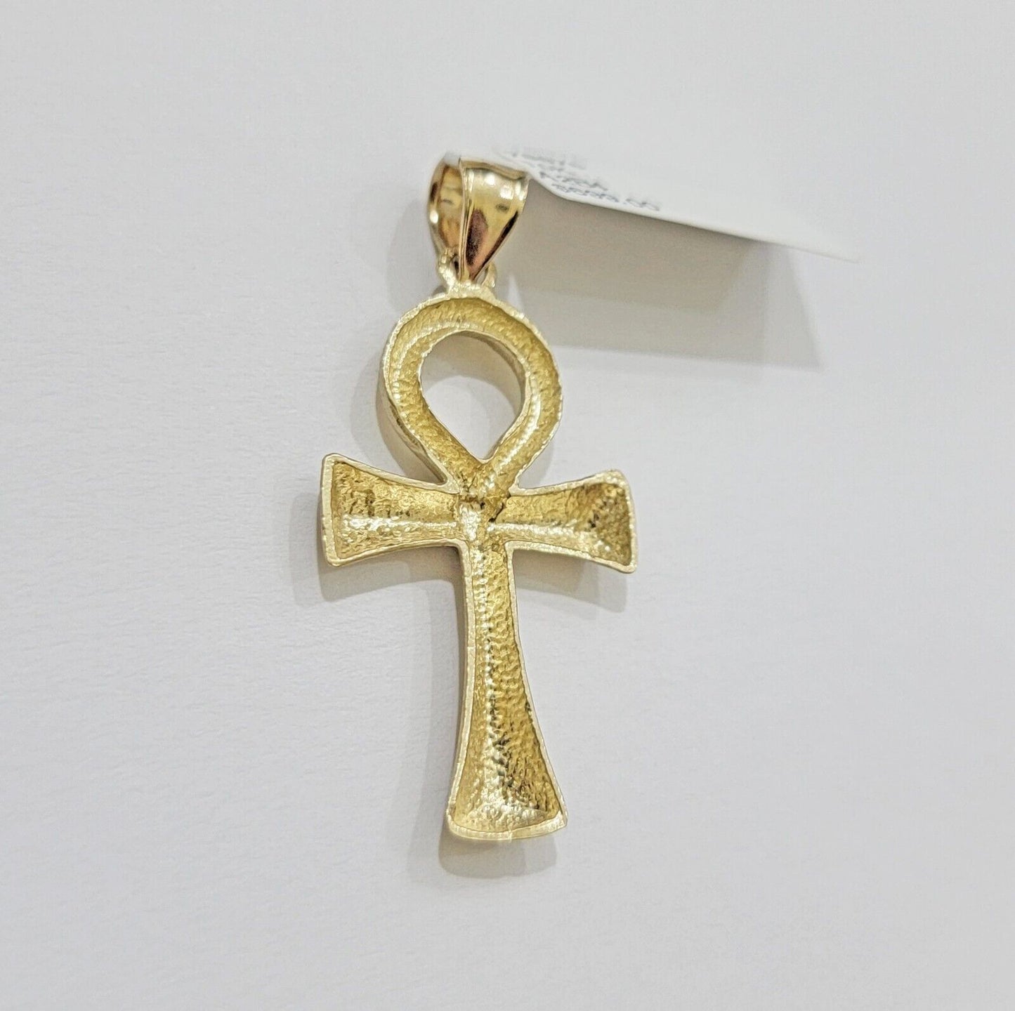 Genuine 10 k Yellow Gold Rope Chain 18 Inch 3mm Necklace With Ankh Cross diamond cuts design as a SET. The Various length of the Chain are 18 Inch with Ankh Cross 1.5 inches. If you are not happy with the way it looks or feels, we do offer 30 - Days FREE Return shipping. Contact us for more information.
