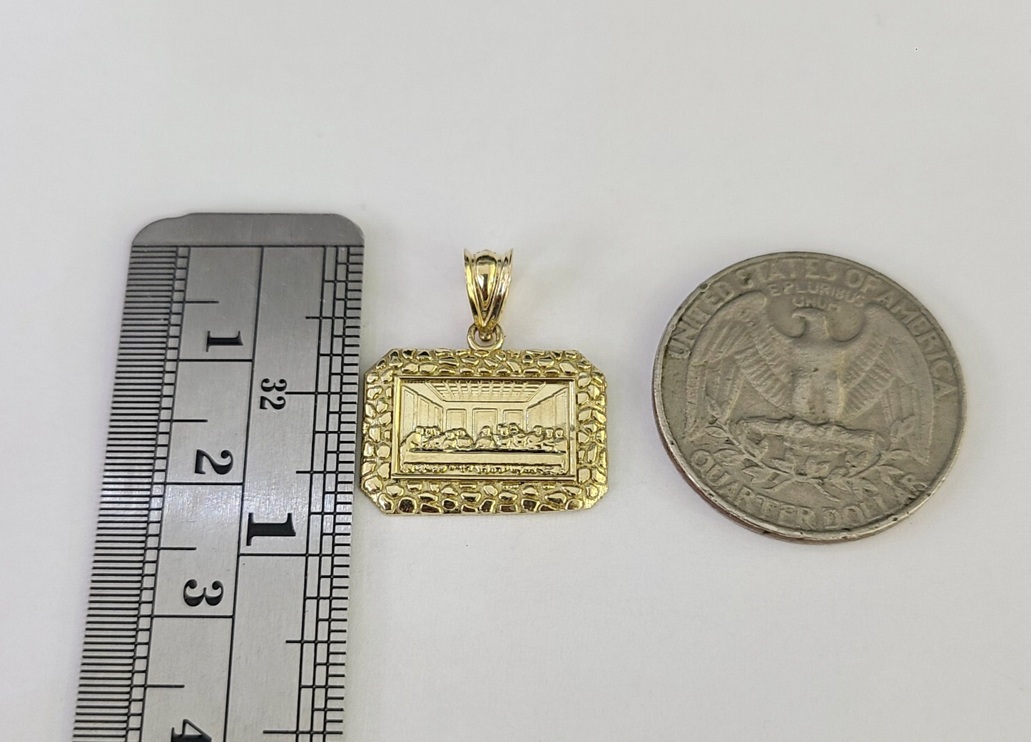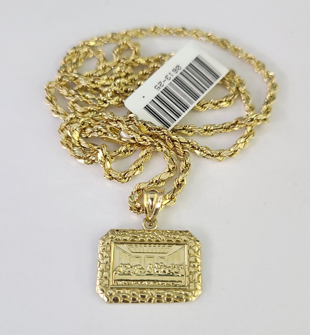 10k Gold Rope Chain Last Supper Charm Nugget Set 18"-28" inch 2.5mm Necklace