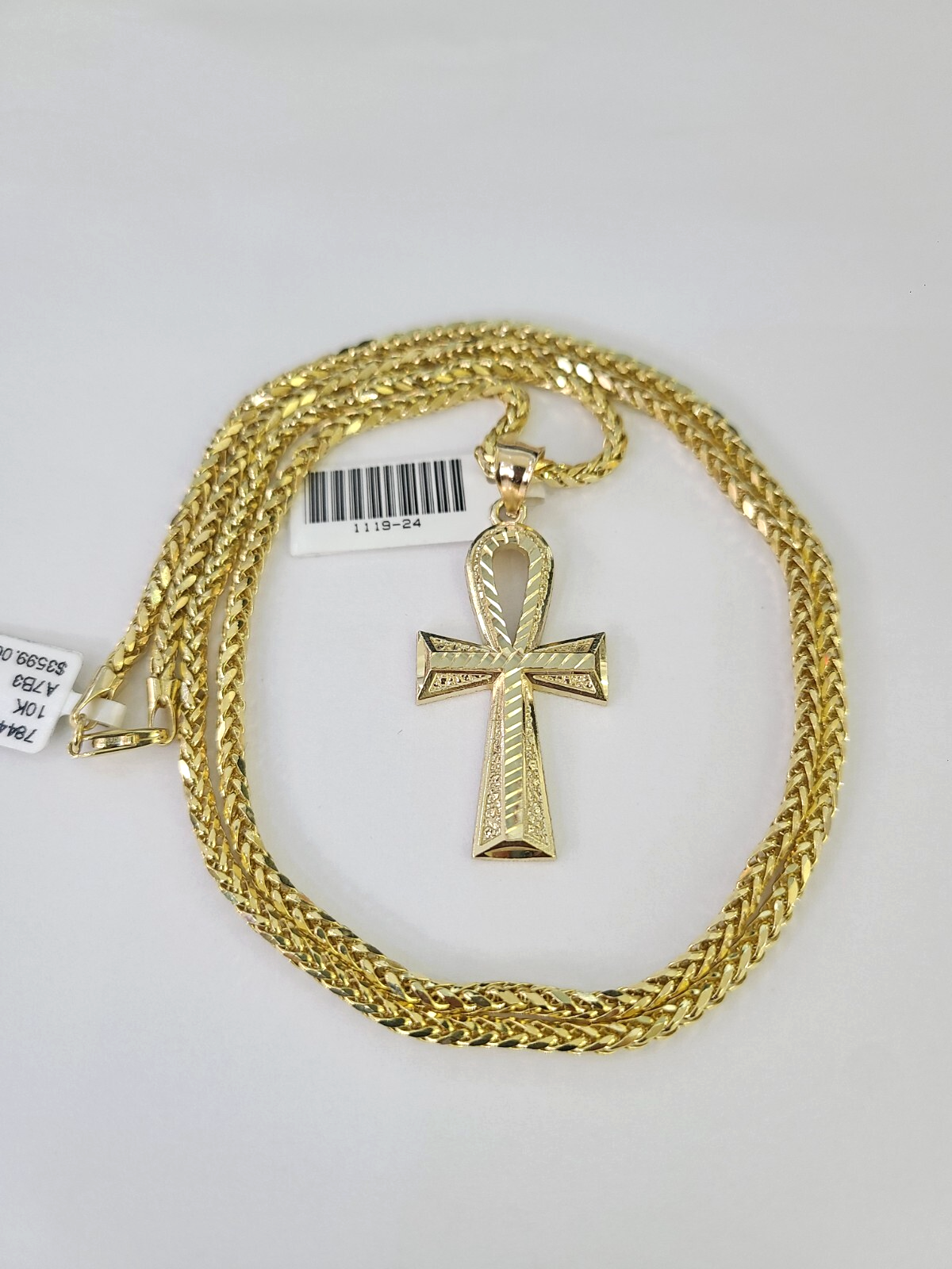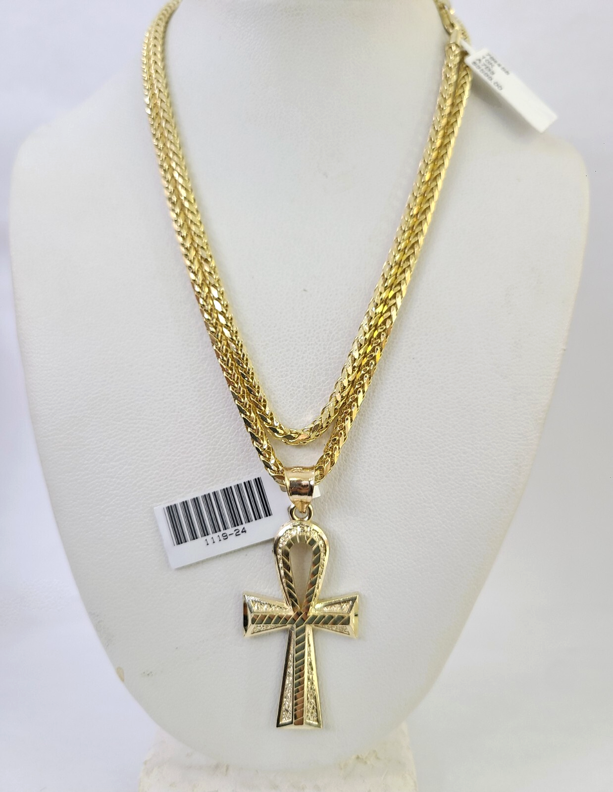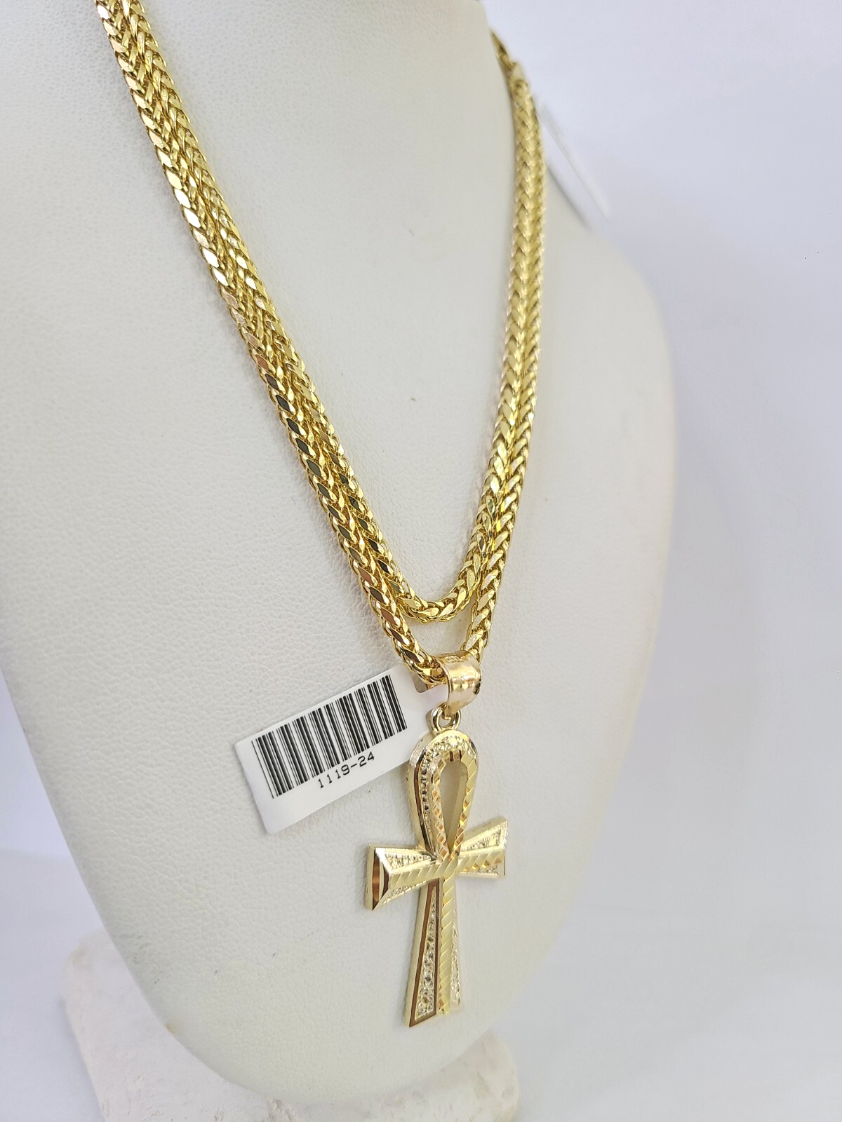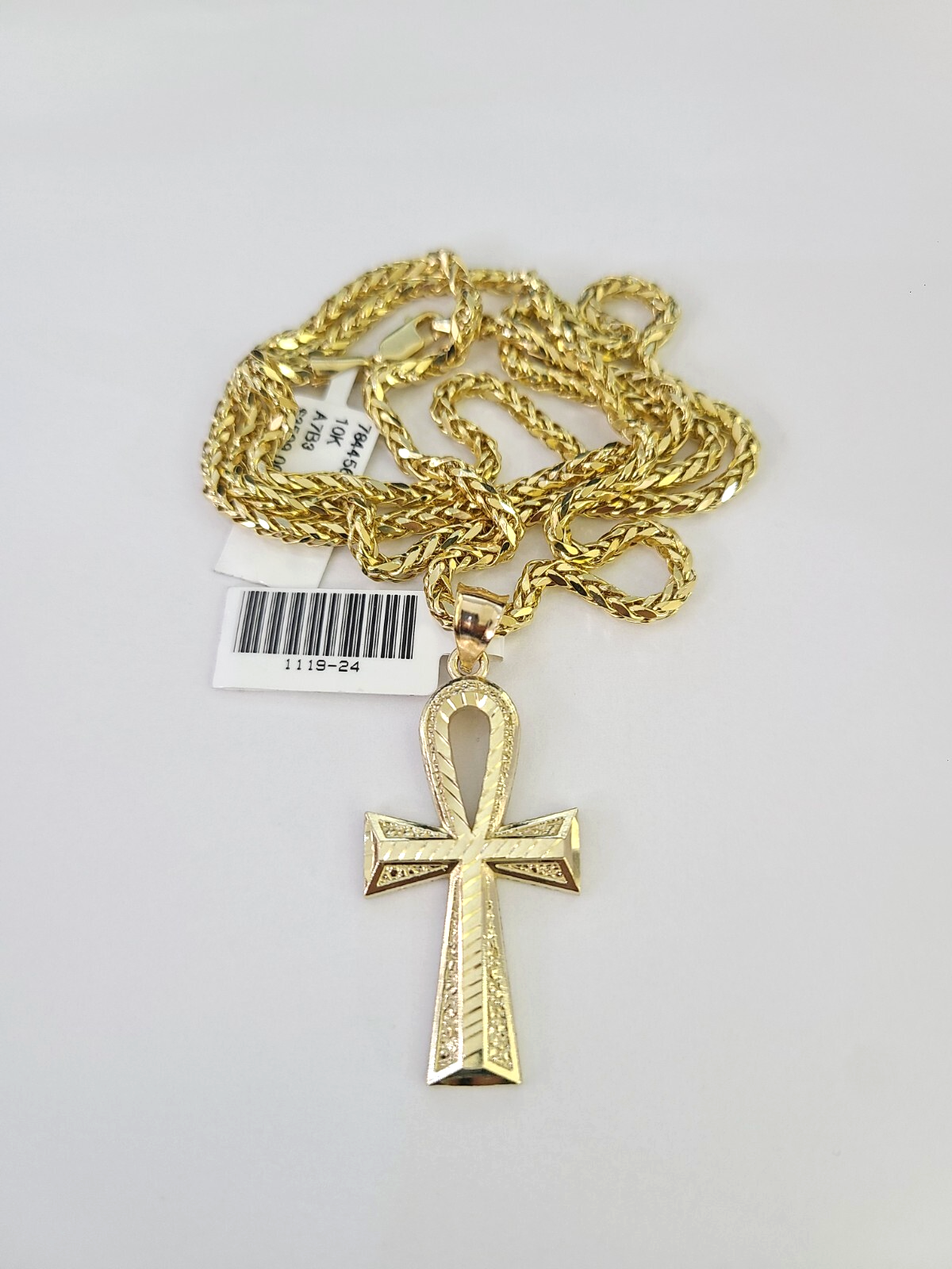 Genuine 10k Yellow Gold Palm Chain 3mm With Ankh Cross design. The Various length of the Chain are 18"-26". The pendants are unique in design and considered durable too. If you are not happy with the way it looks or feels, we do offer 30 - Days FREE Return shipping. Contact us for more information.