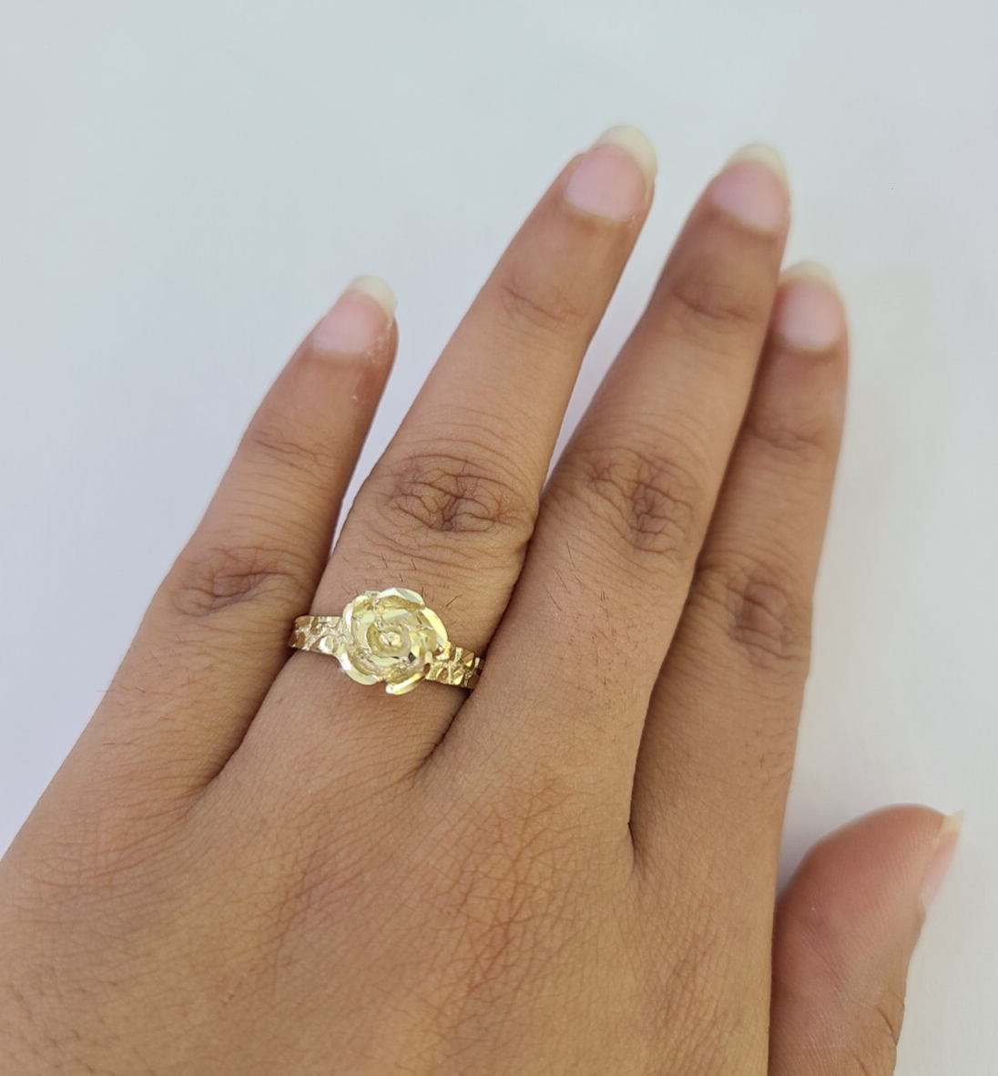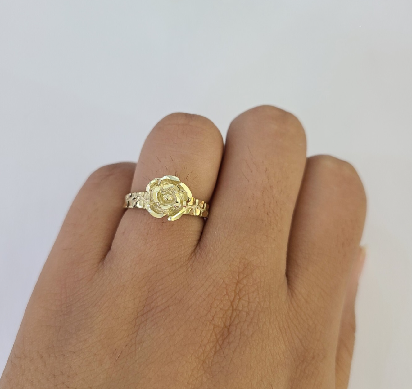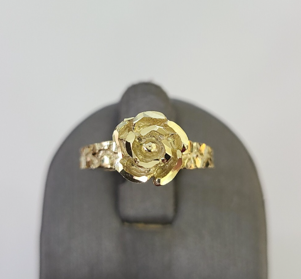10k Yellow Gold Rose Flower Ring Nugget Casual Band Genuine Brand New Size 6 7 8 9 10 11 & 12
