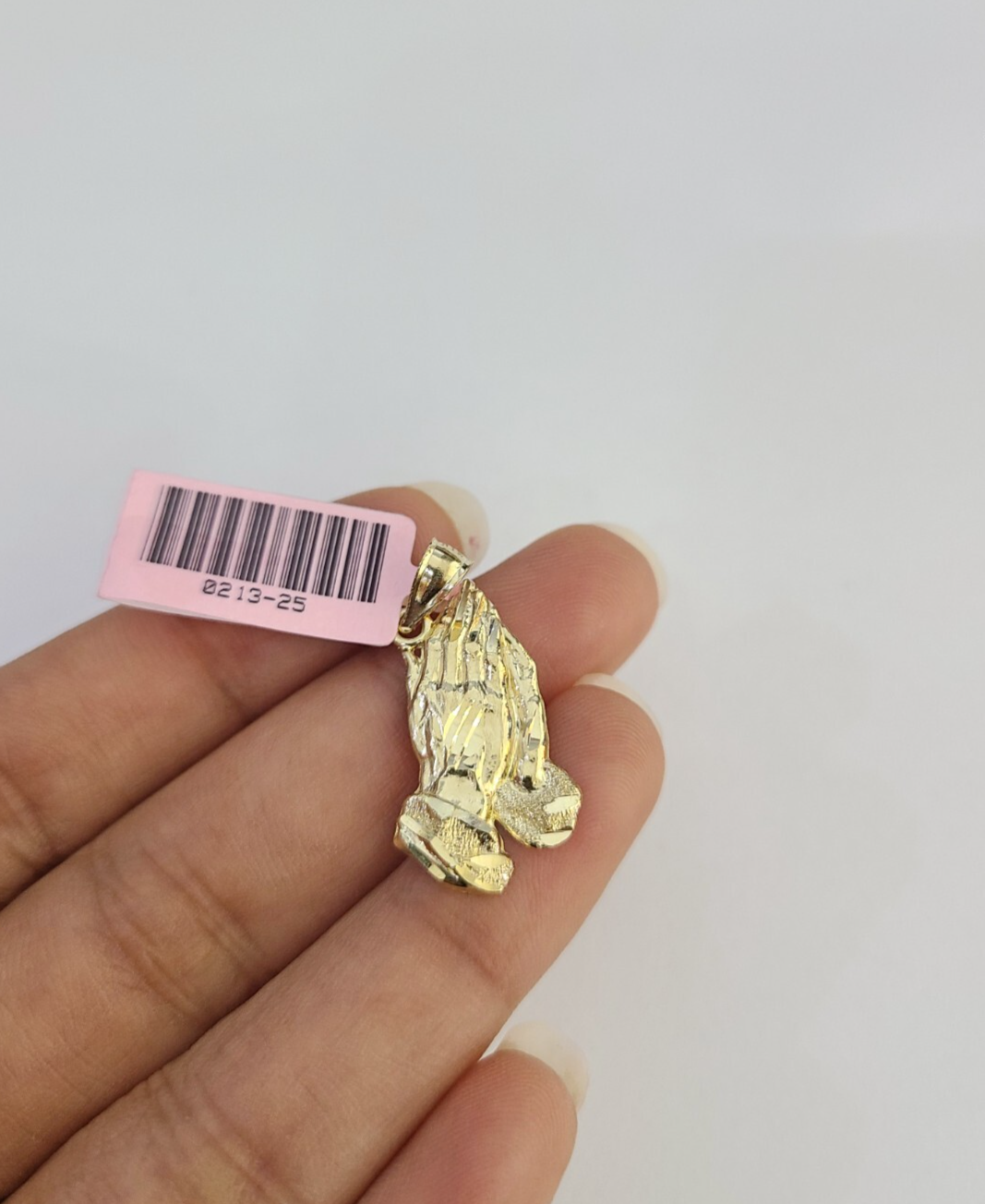 14k Yellow Gold Real (Not plated , Not filled ) Praying Hands Pendant. The pendant can be worn with any chain. The pendant is considered durable. If you are not happy with the way it looks or feels, we do offer 30 - Days FREE Return shipping. Please note that this listing does not include a Necklace.