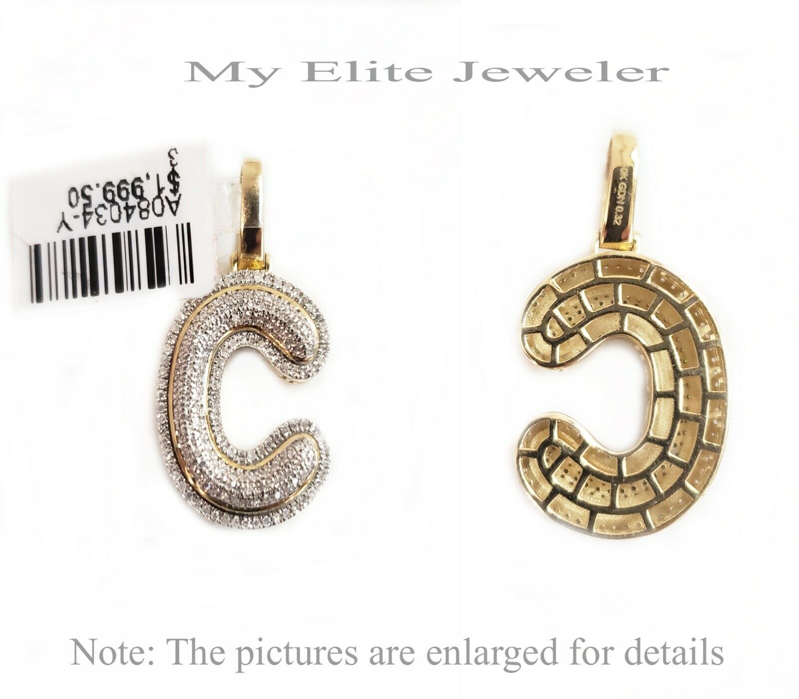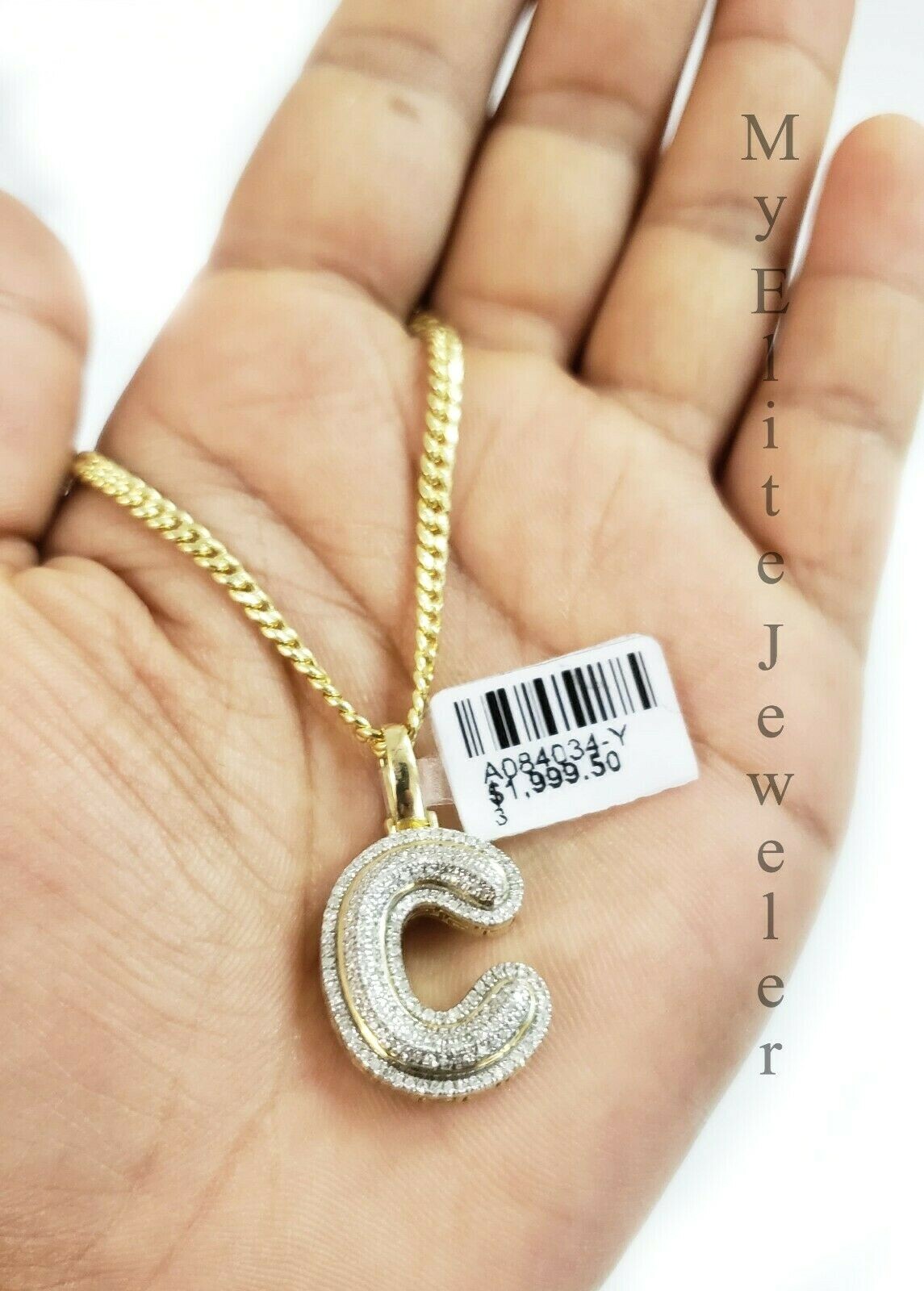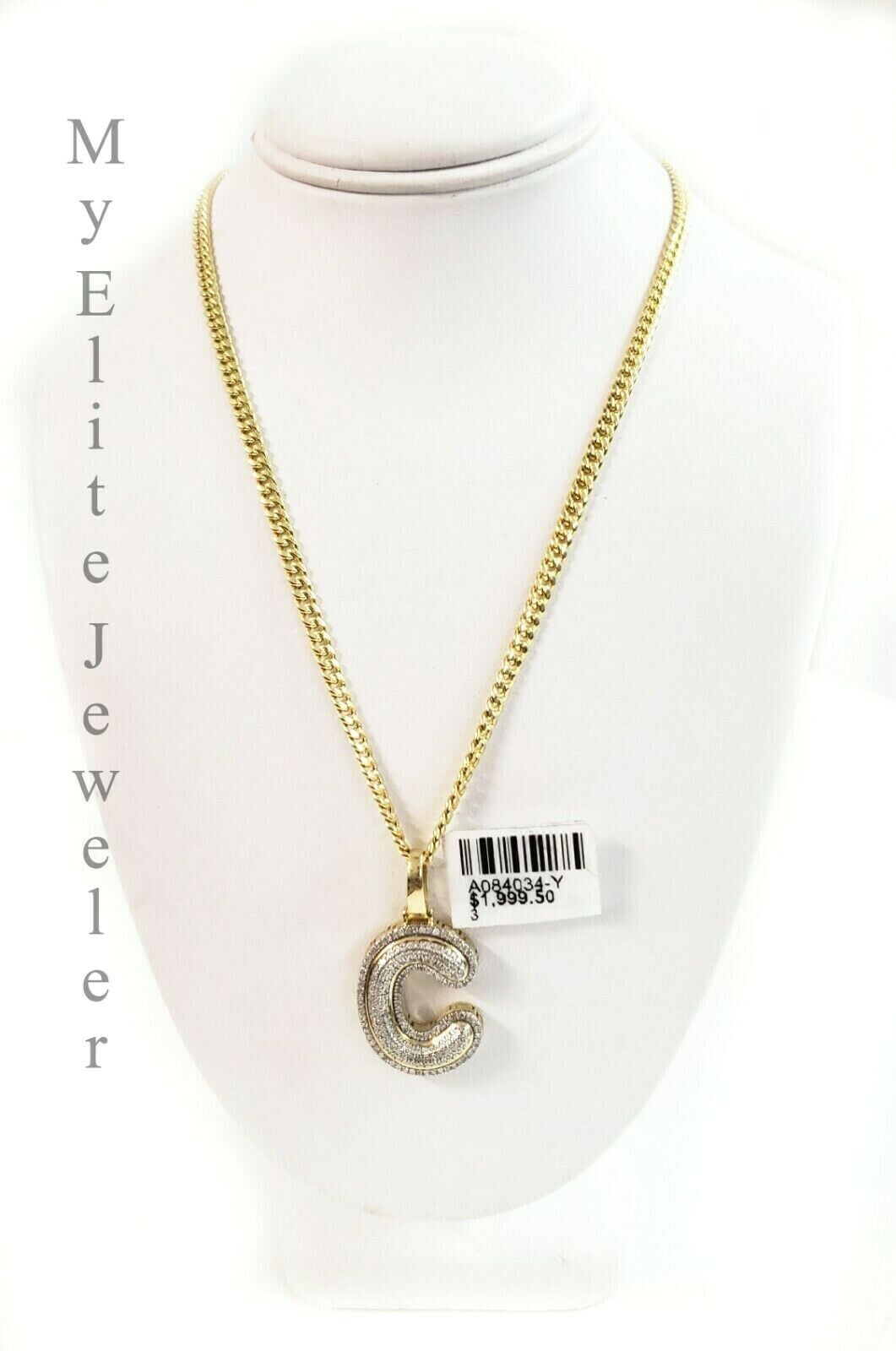 10 k Yellow Gold Real ( Not plated , Not filled ) Cuban Chain with 10K 0.32 CT Initial "C" Diamond Pendant. The Width of the necklace is 3 mm and 22 Inch Long whereas the length of the cross is 1 Inch . The Clasp is Lobster safety lock. The chain is Beautiful and can be worn with other pendant too. If you are not happy with the way it looks or feels, we do offer 30 - Days FREE Return shipping.