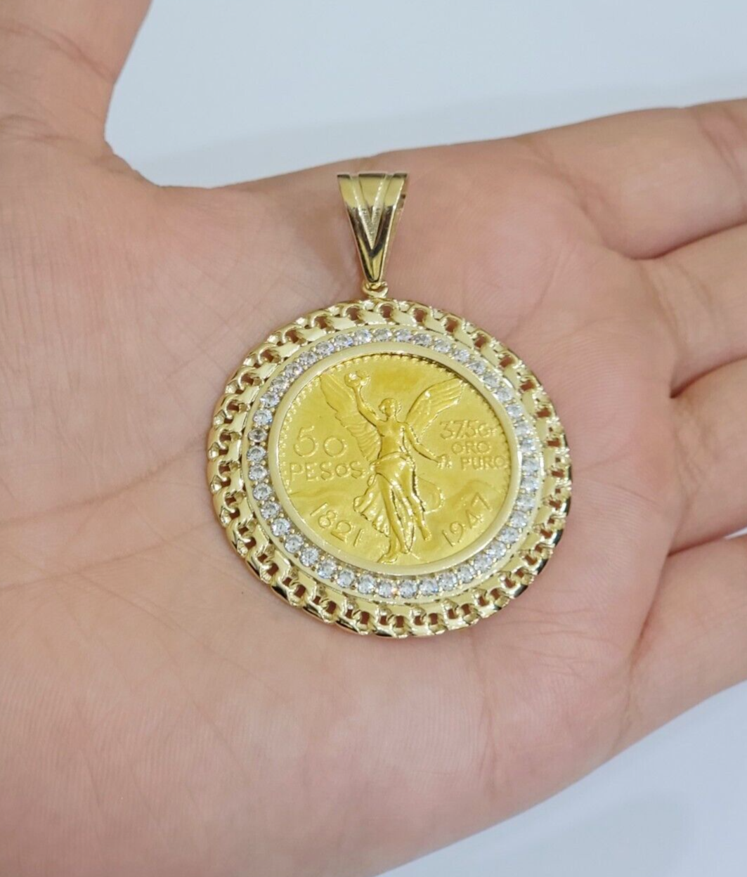 Mexican Centenario Coin 1947 Charm Pendant Replica 50 pesos With Bezel 10kt Gold