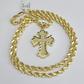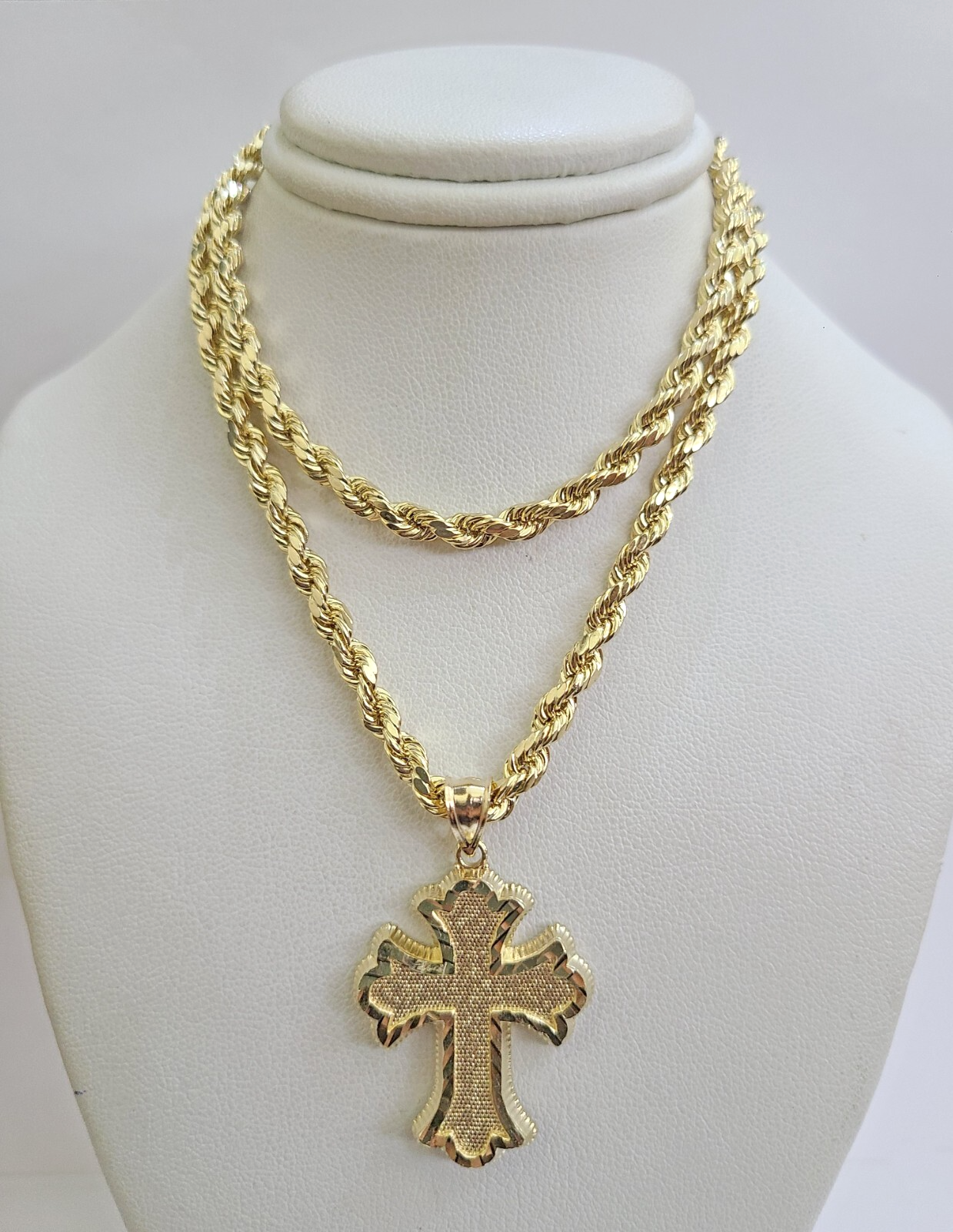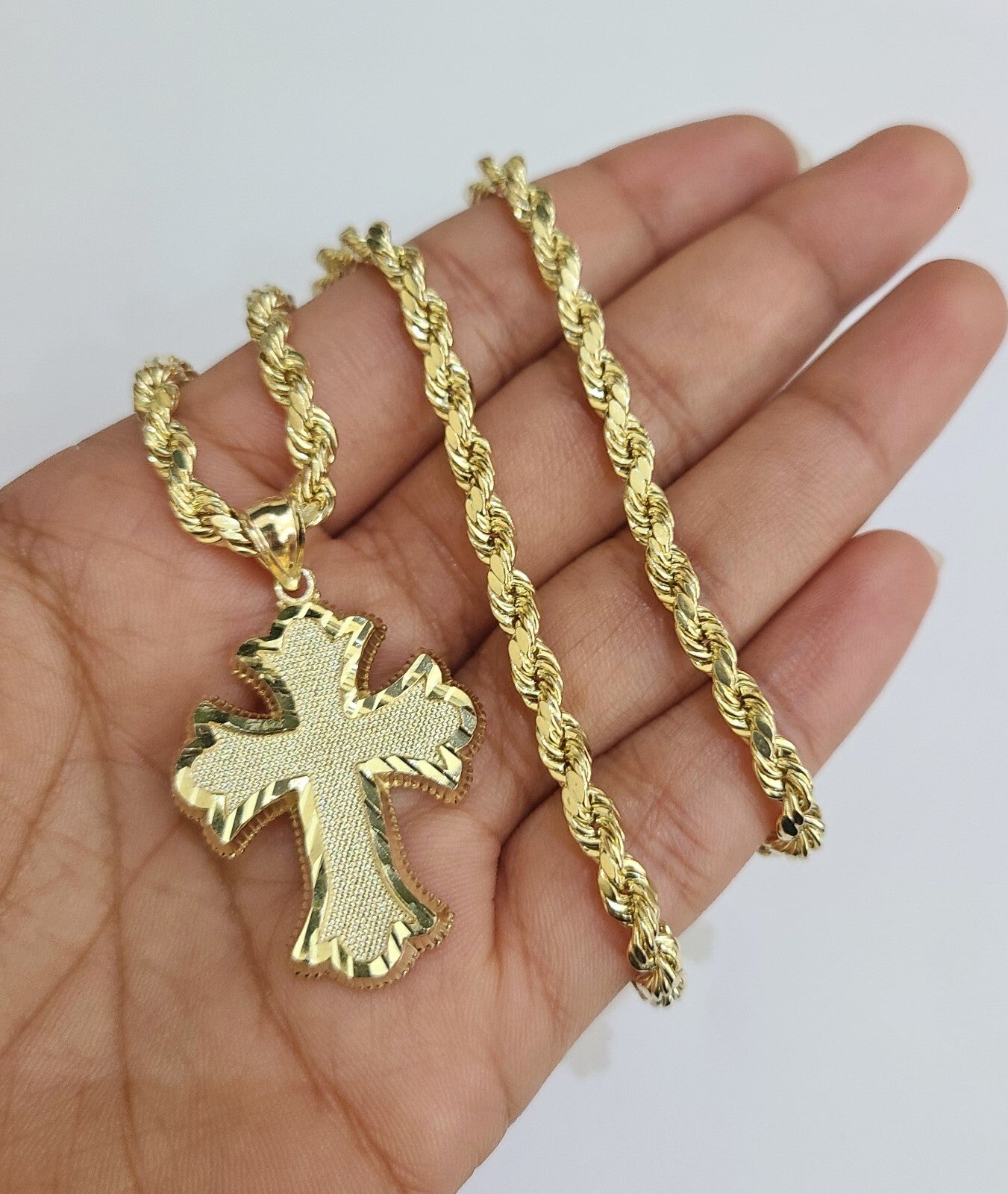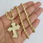 REAL 10k Jesus Cross Charm Rope Chain Pendant 4mm Necklace Set 18"-28" in