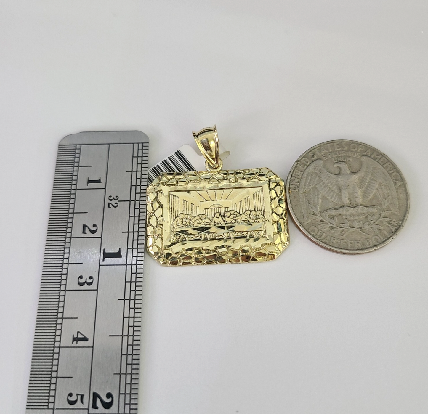 REAL 10k Rope Chain Last Supper Charm Pendant 3mm Necklace Set 18"-30"