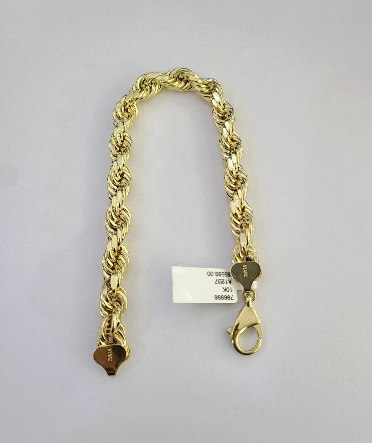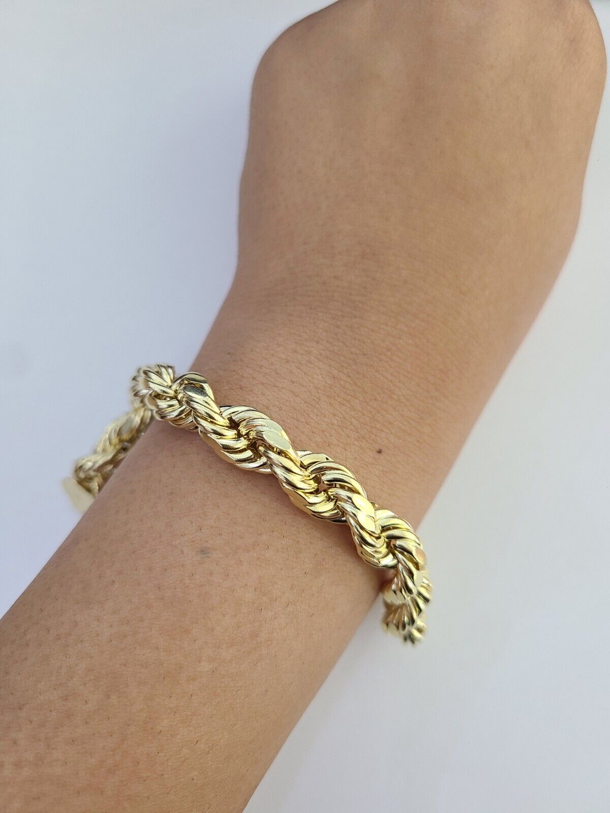 Real 10k Yellow Gold Bracelet Rope 10mm 9 Inch Diamond Cuts 10KT Gold