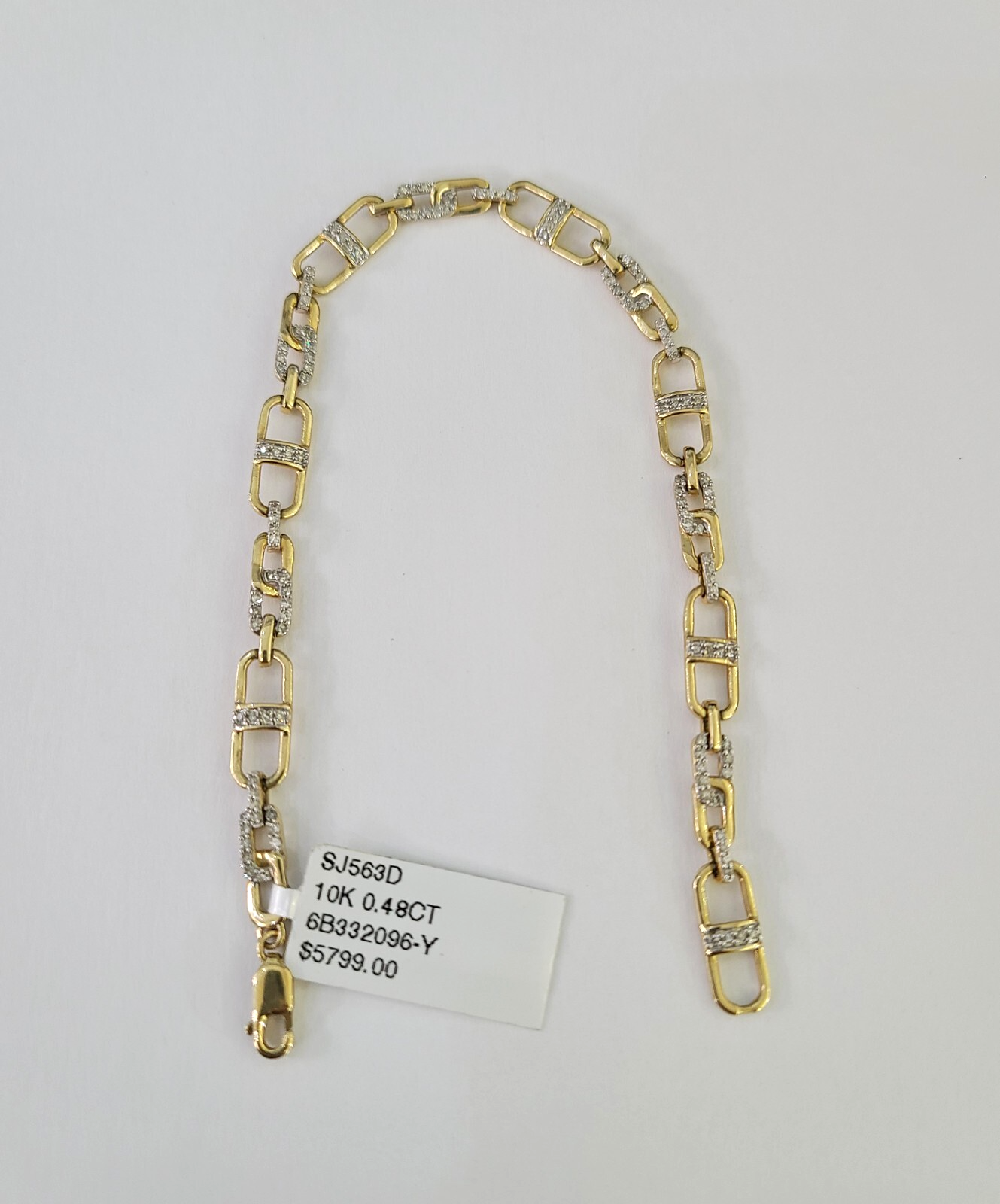 10k Yellow Gold ( Real , Not plated , Not filled ) Diamond link bracelet. The Width of the bracelet is 5mm and 7.5 Inches Long. The Clasp is Lobster Lock. The bracelet is considered durable. The bracelet is 100% guaranteed 10k Yellow gold and have been professionally tested and stamped 10k for purity authenticity. SJ563D