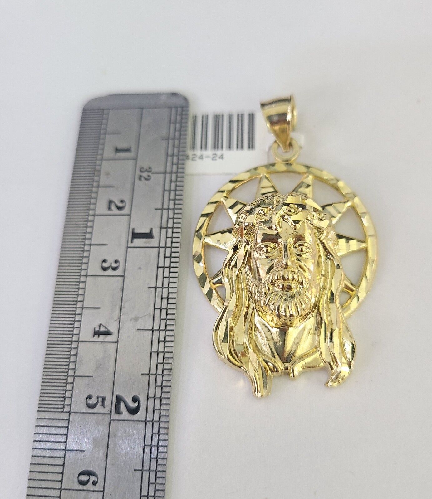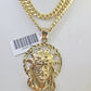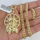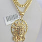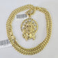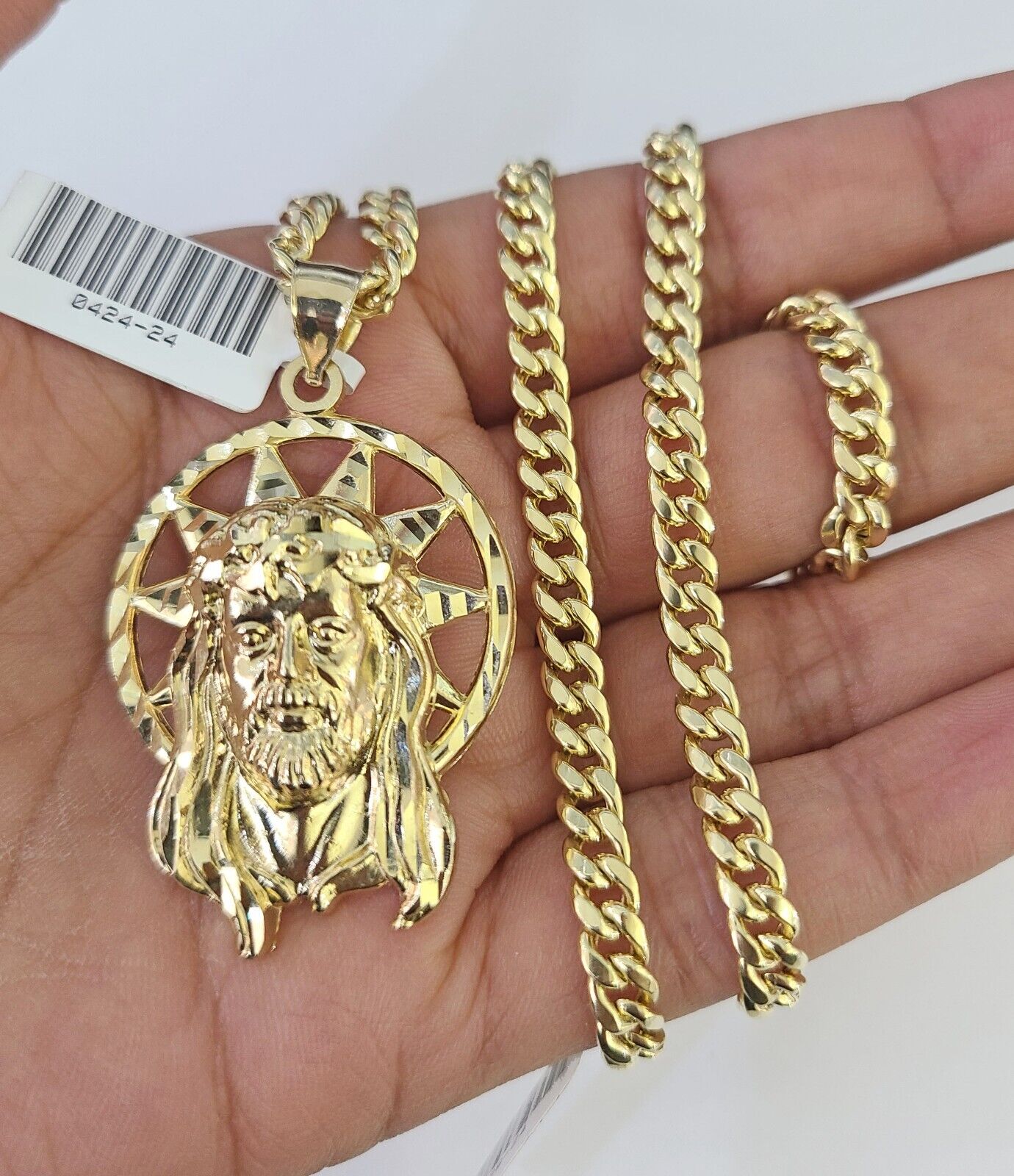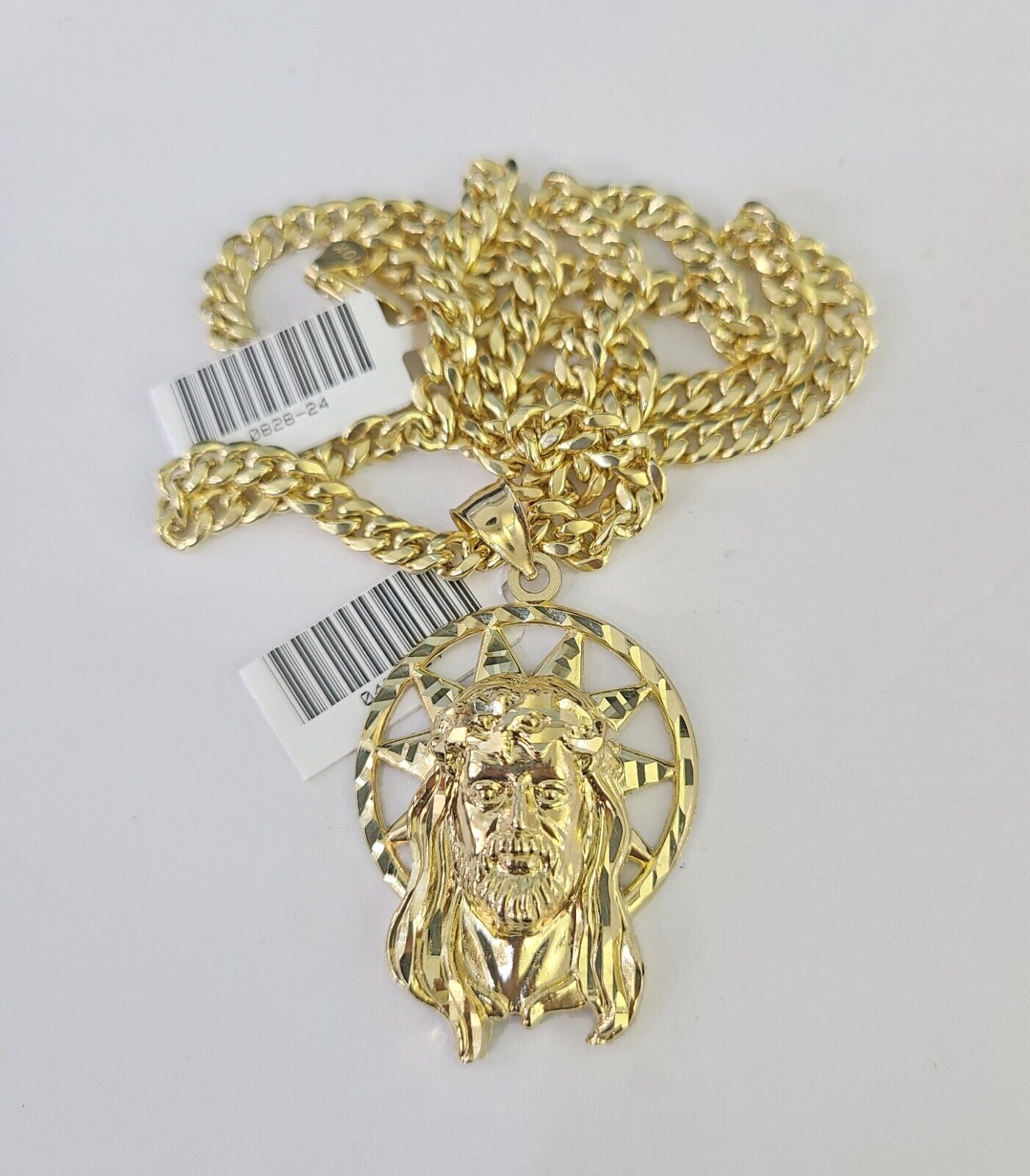 10k Gold Chain Jesus Head Pendant Set Miami Cuban link Necklace 5mm 20-30 Inch