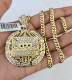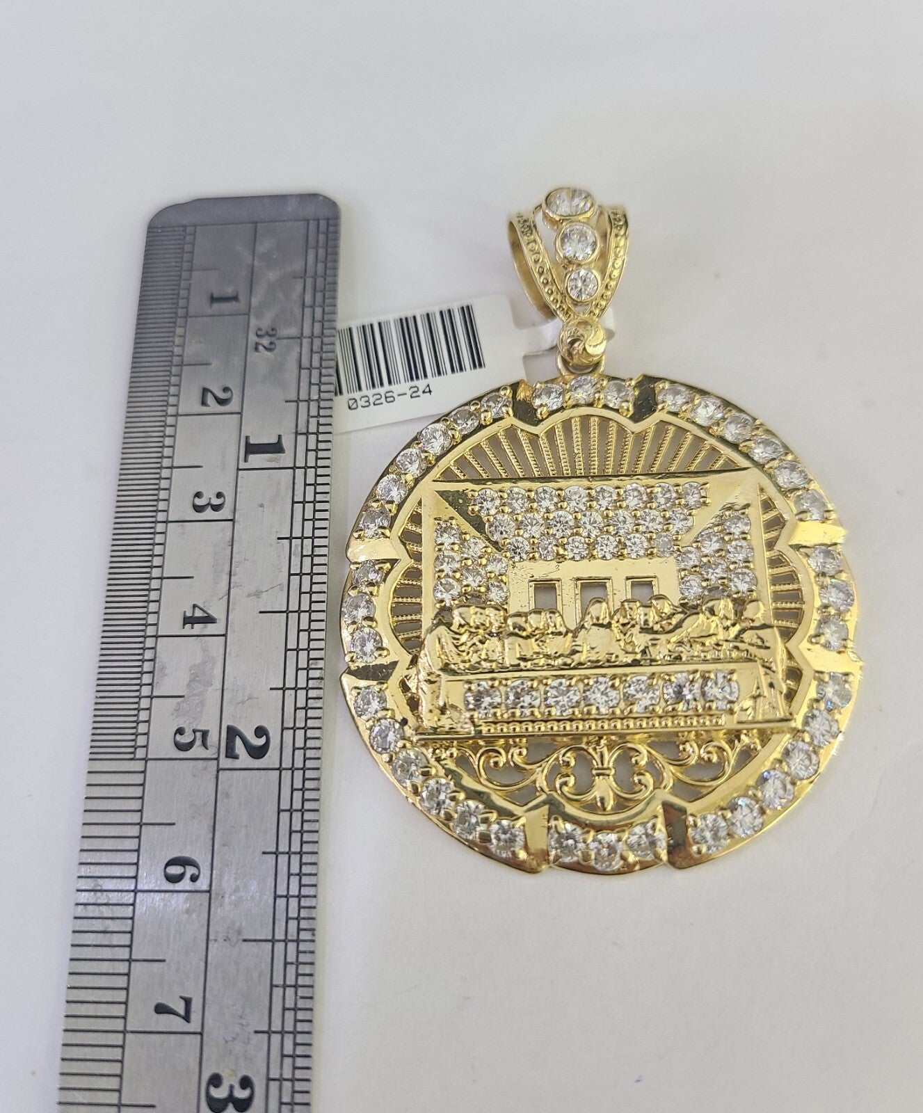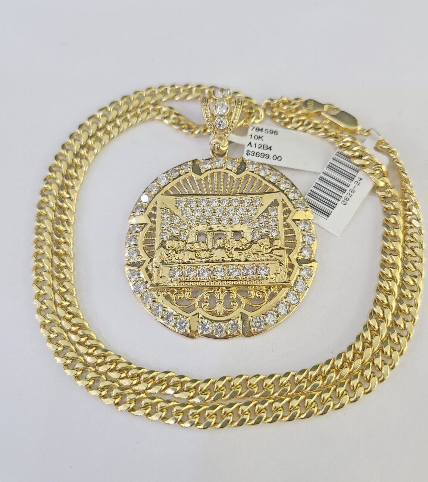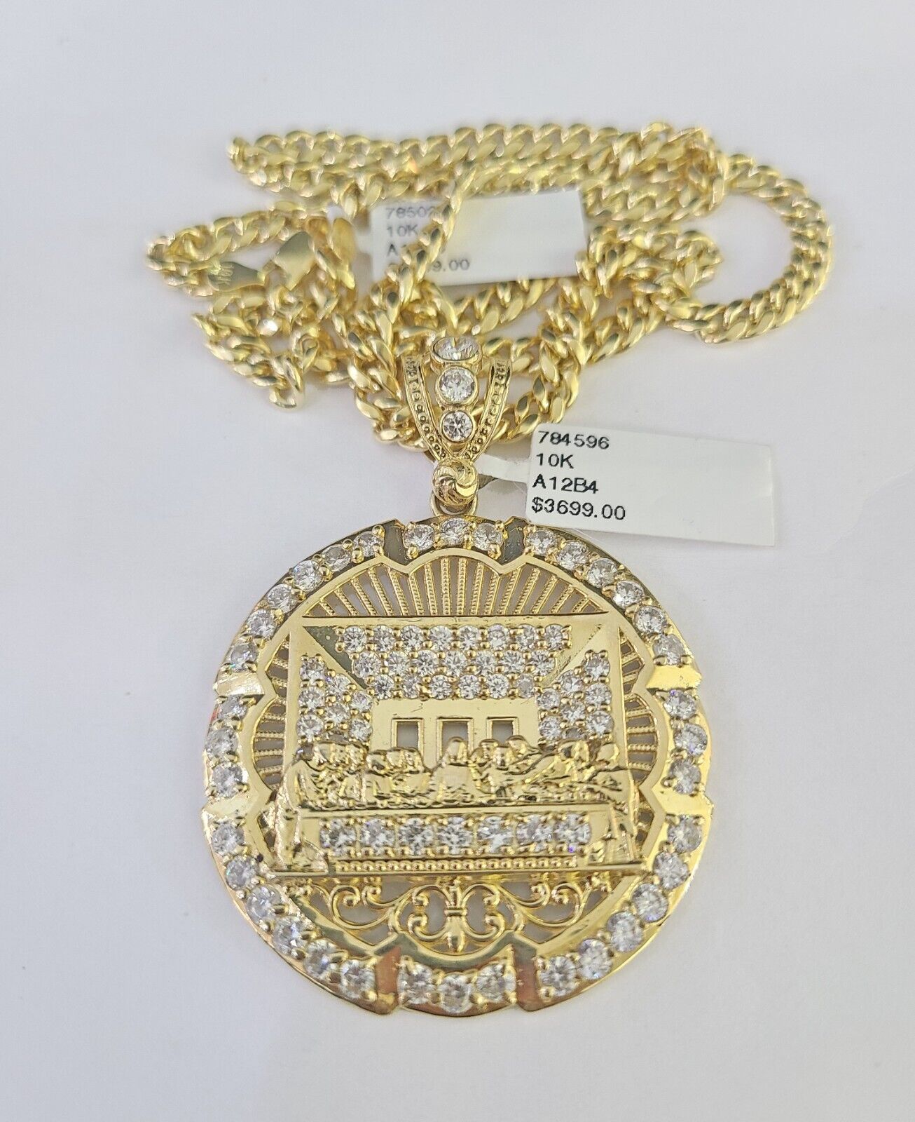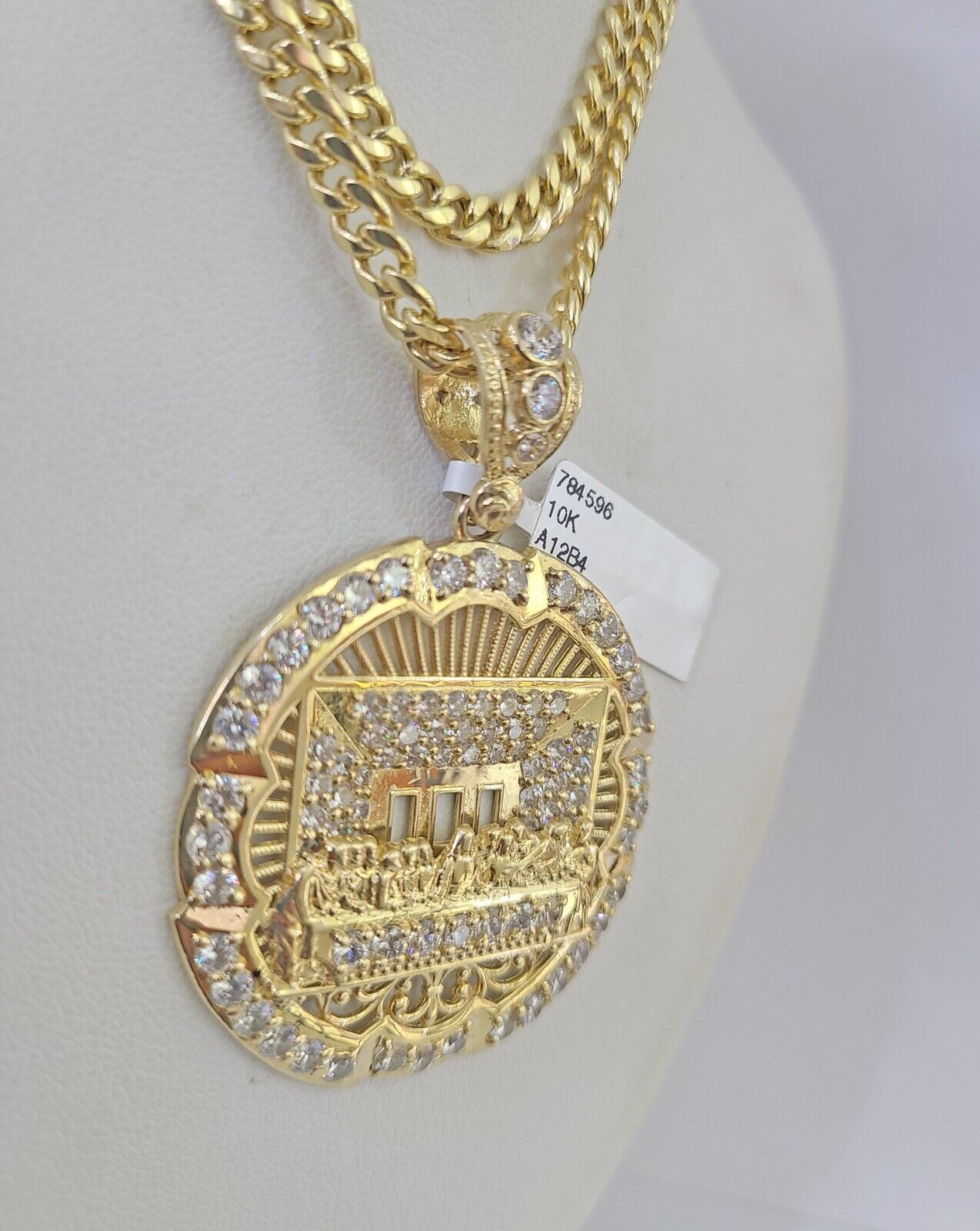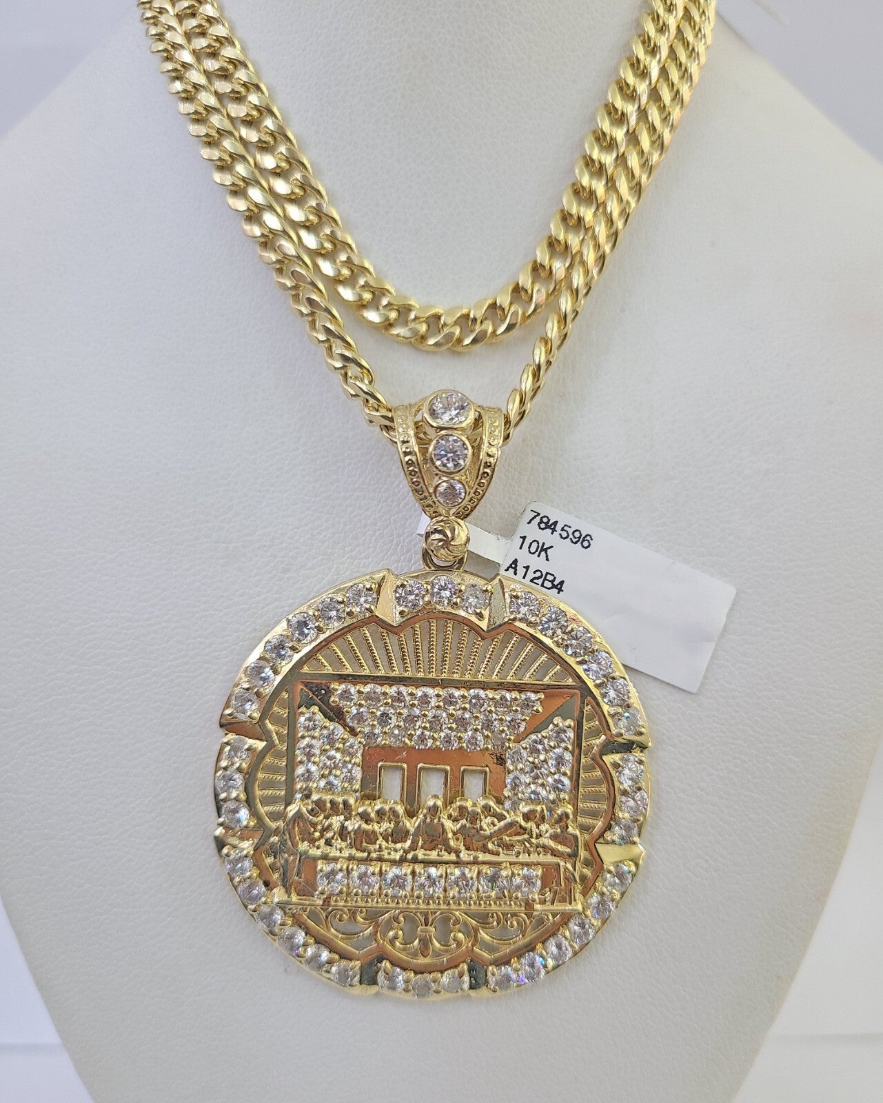 10k Gold Chain Last Supper Pendant Set Miami Cuban link Necklace 5mm 20-30 Inch