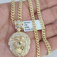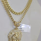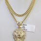 10k Gold Chain Lion Pendant Set Miami Cuban Necklace 4mm 18"-26" Charm