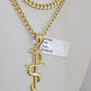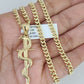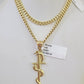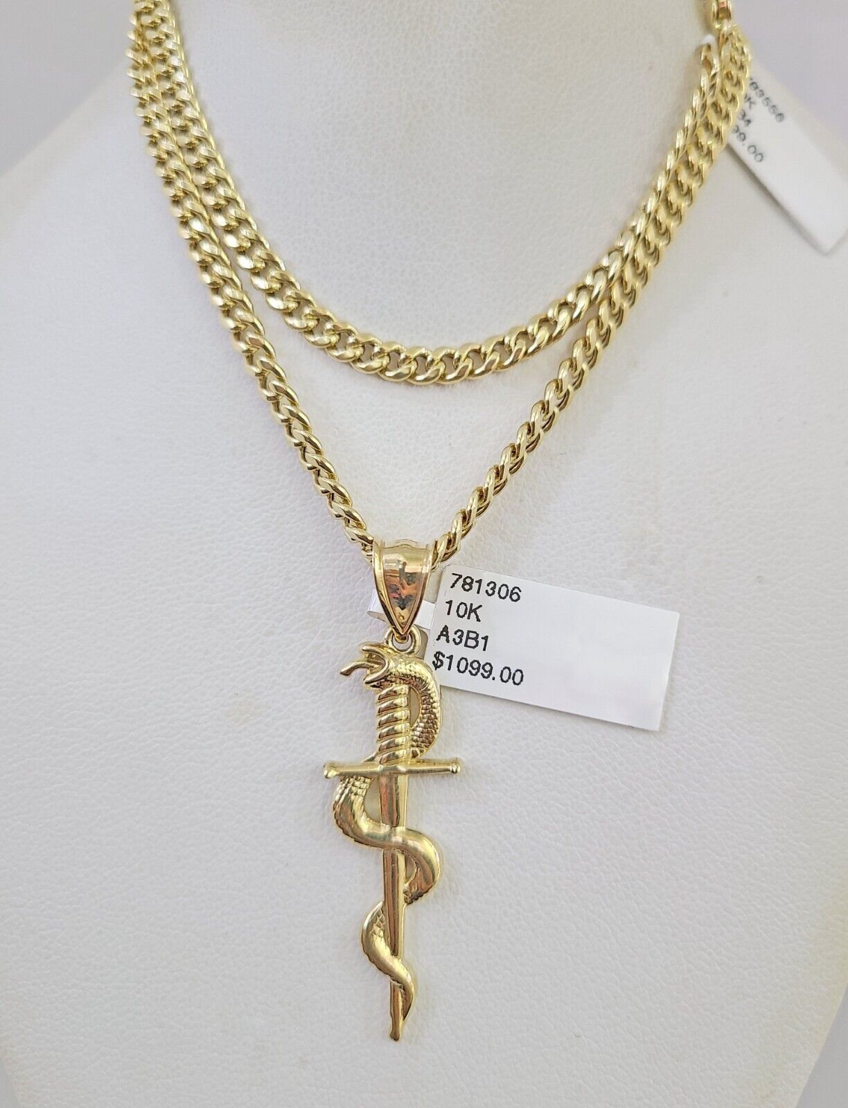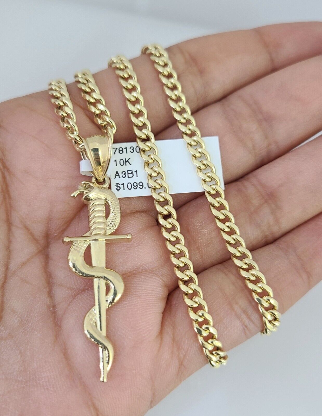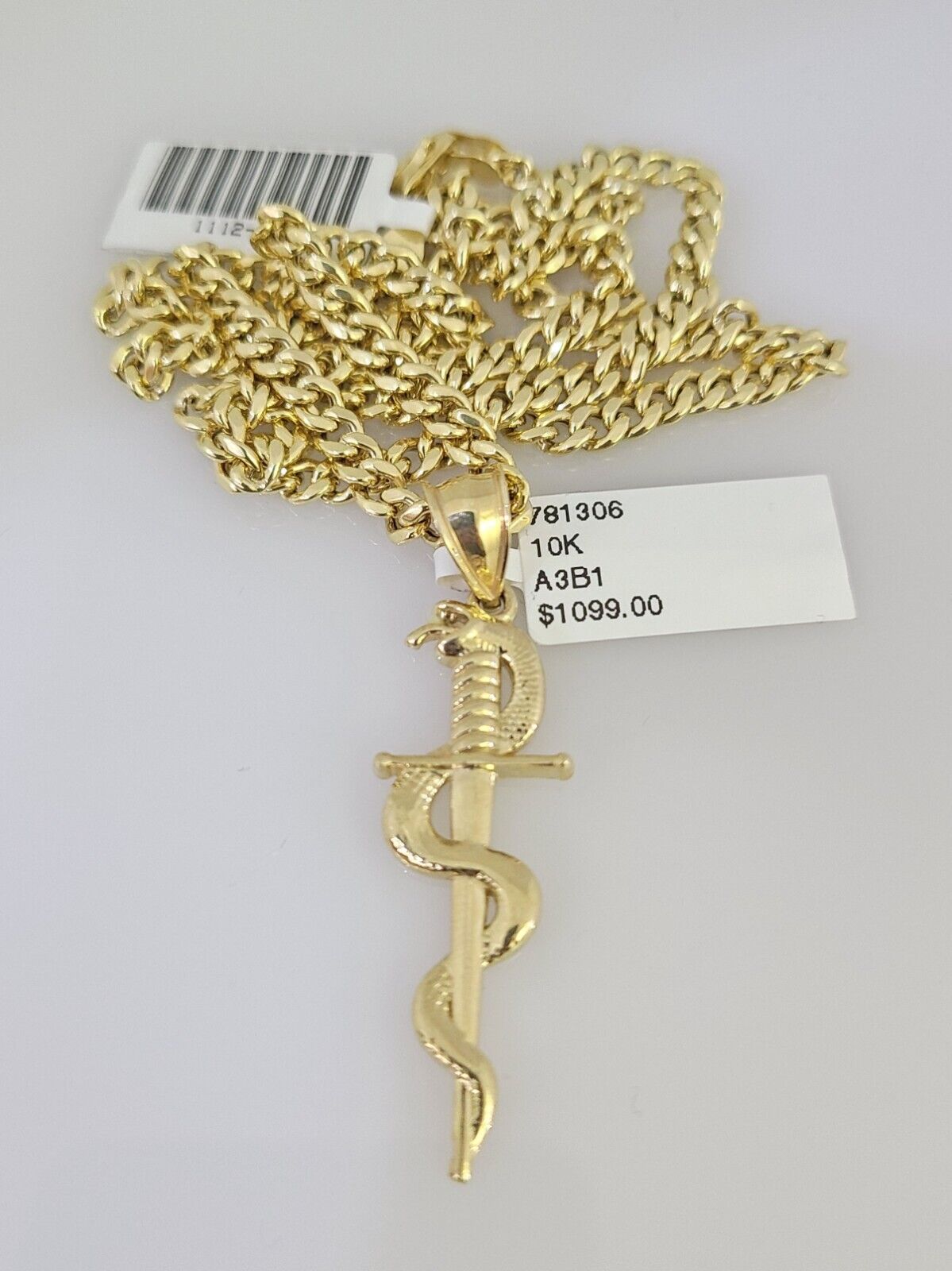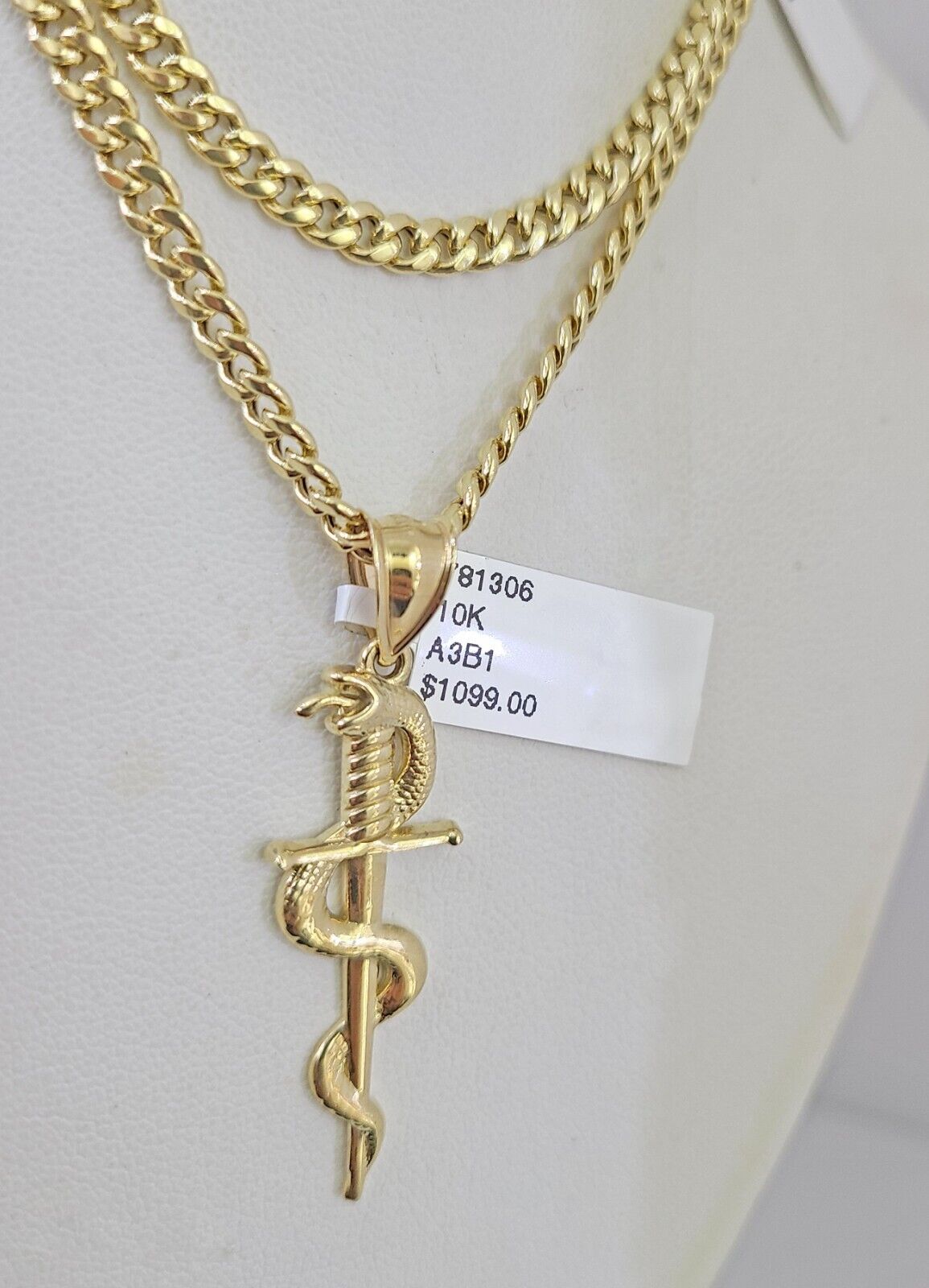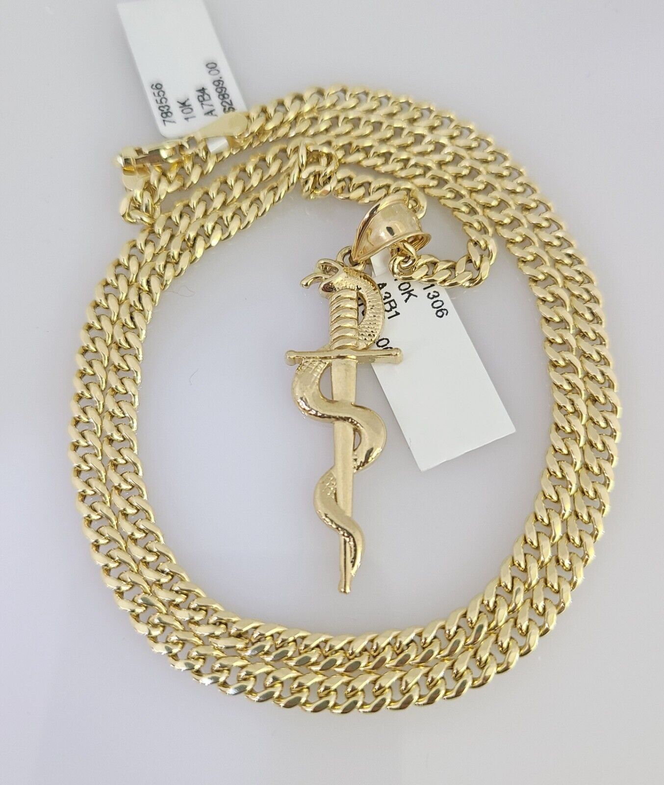 10k Gold Chain Snake Cross Pendant Set Miami Cuban Necklace 4mm 18"-26" Charm