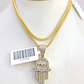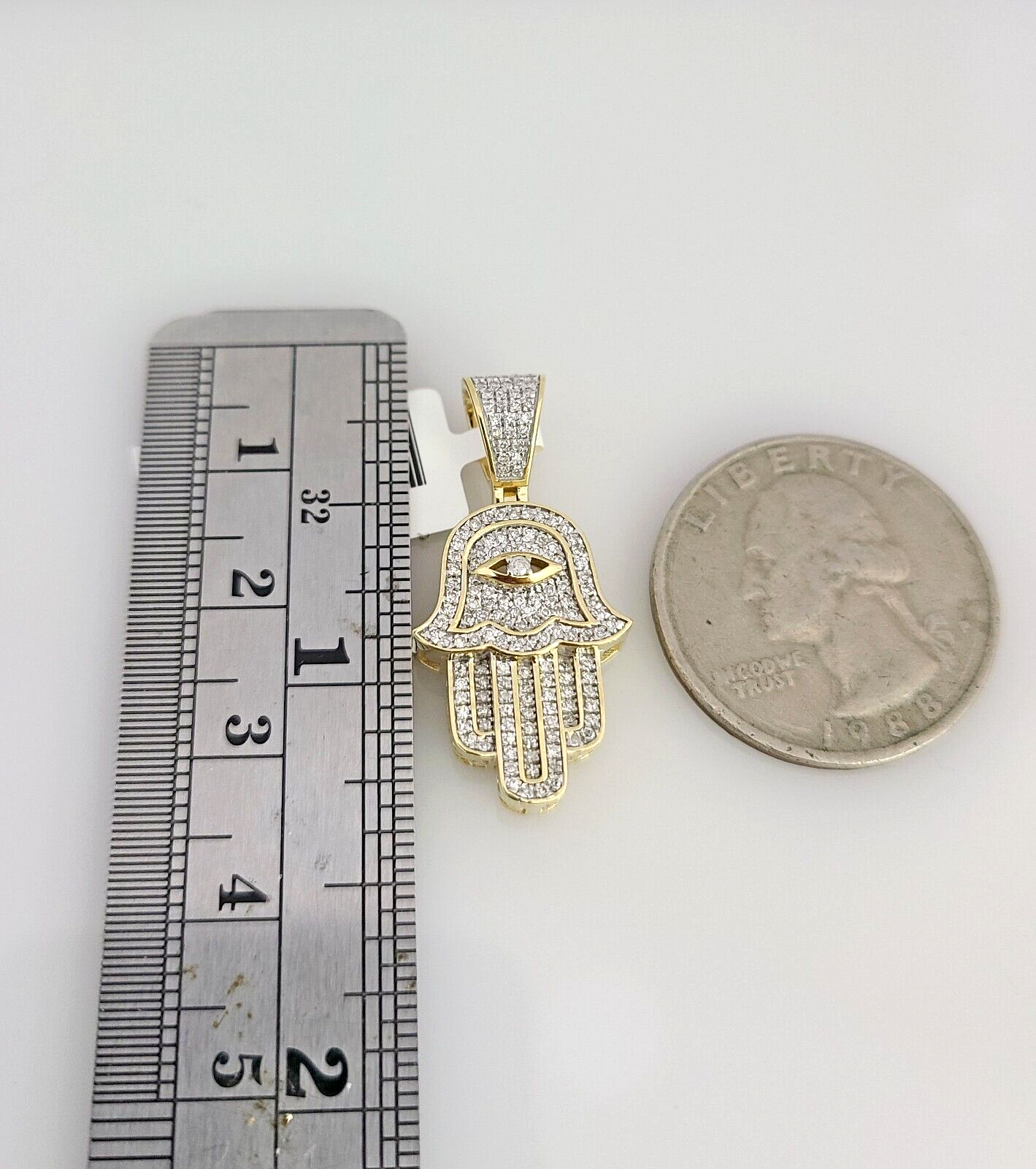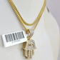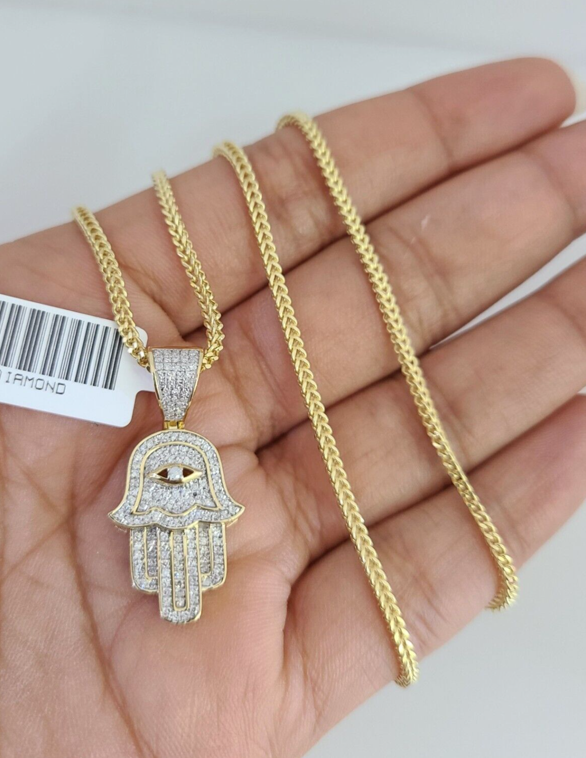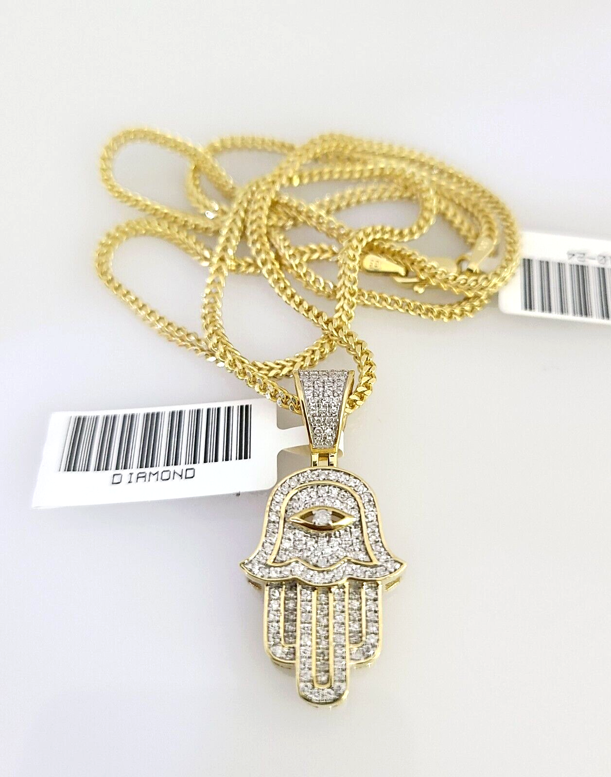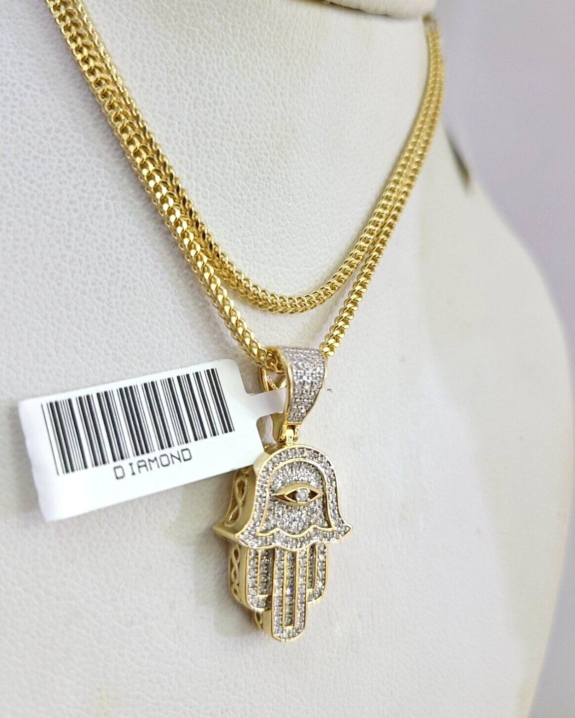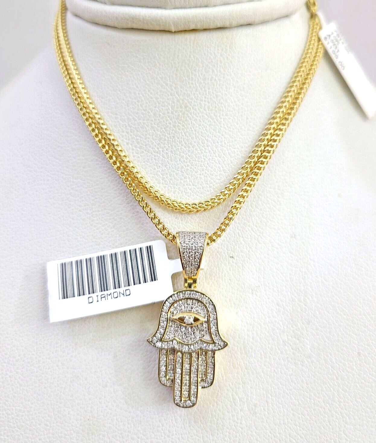10k Gold Franco Chain Diamond Hamsa Charm Pendant 2mm 18-24 Inches Necklace SET