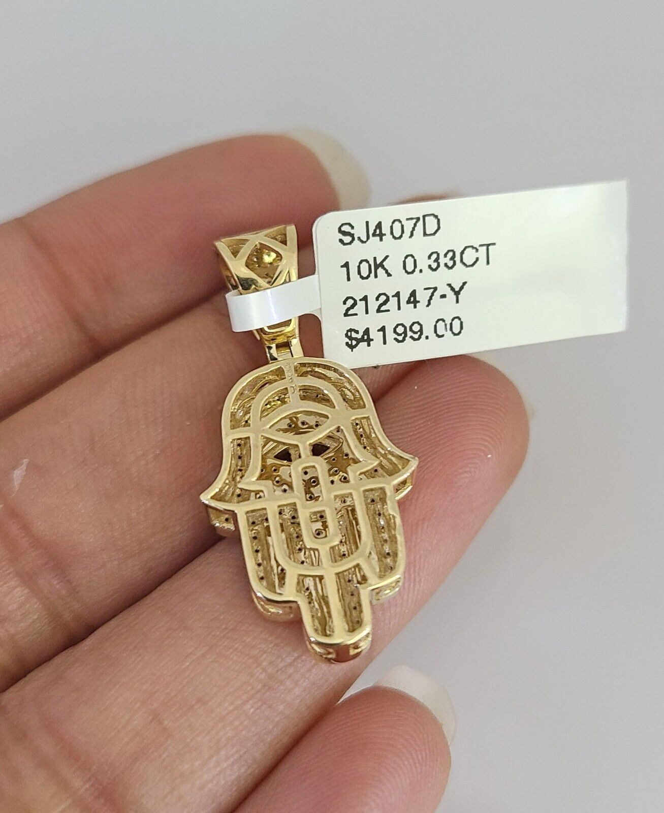 Genuine 10k Yellow Gold Franco Necklace 2mm Chain With Diamond Hamsa Charm. The Various length of the Chain are 18"-24" with Diamond Hamsa Charm 1-1.5 inches (approx.). The pendants are unique in design and considered durable too. If you are not happy with the way it looks or feels, we do offer 30 - Days FREE Return shipping. Contact us for more information.