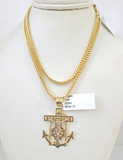 10k Gold Franco Chain Jesus Anchor Charm Pendant 2.5mm 18-24 Inches Necklace