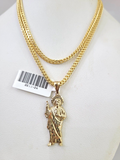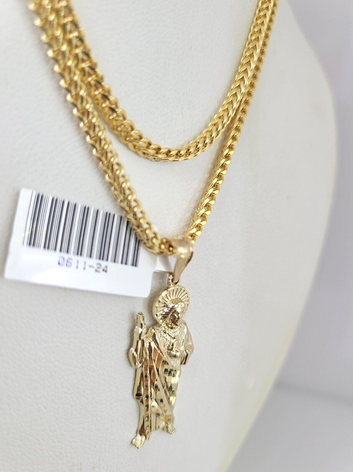 10k Gold Franco Chain Saint Jude Charm Pendant 2.5mm 18-24 Inches Necklace SET