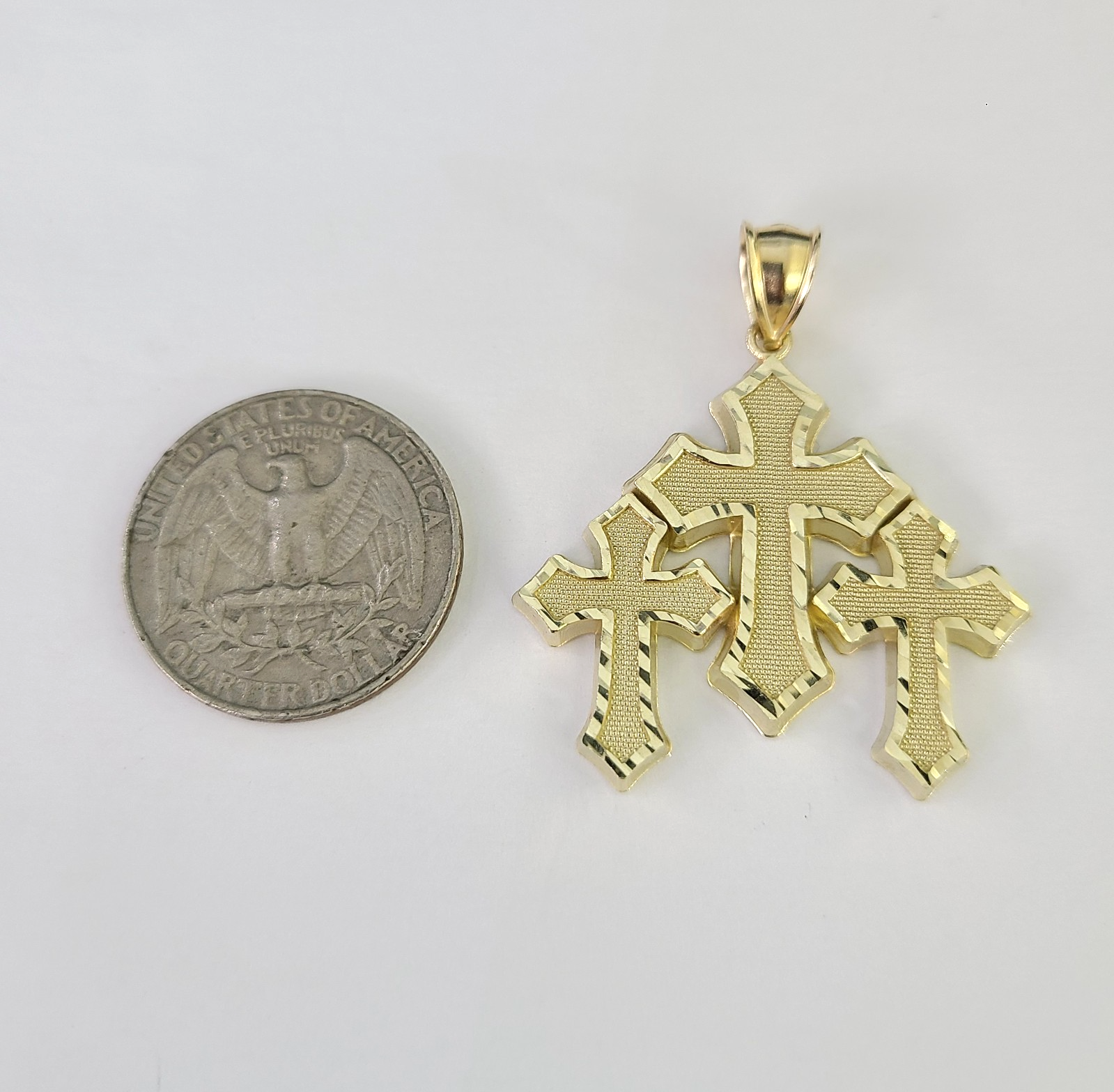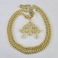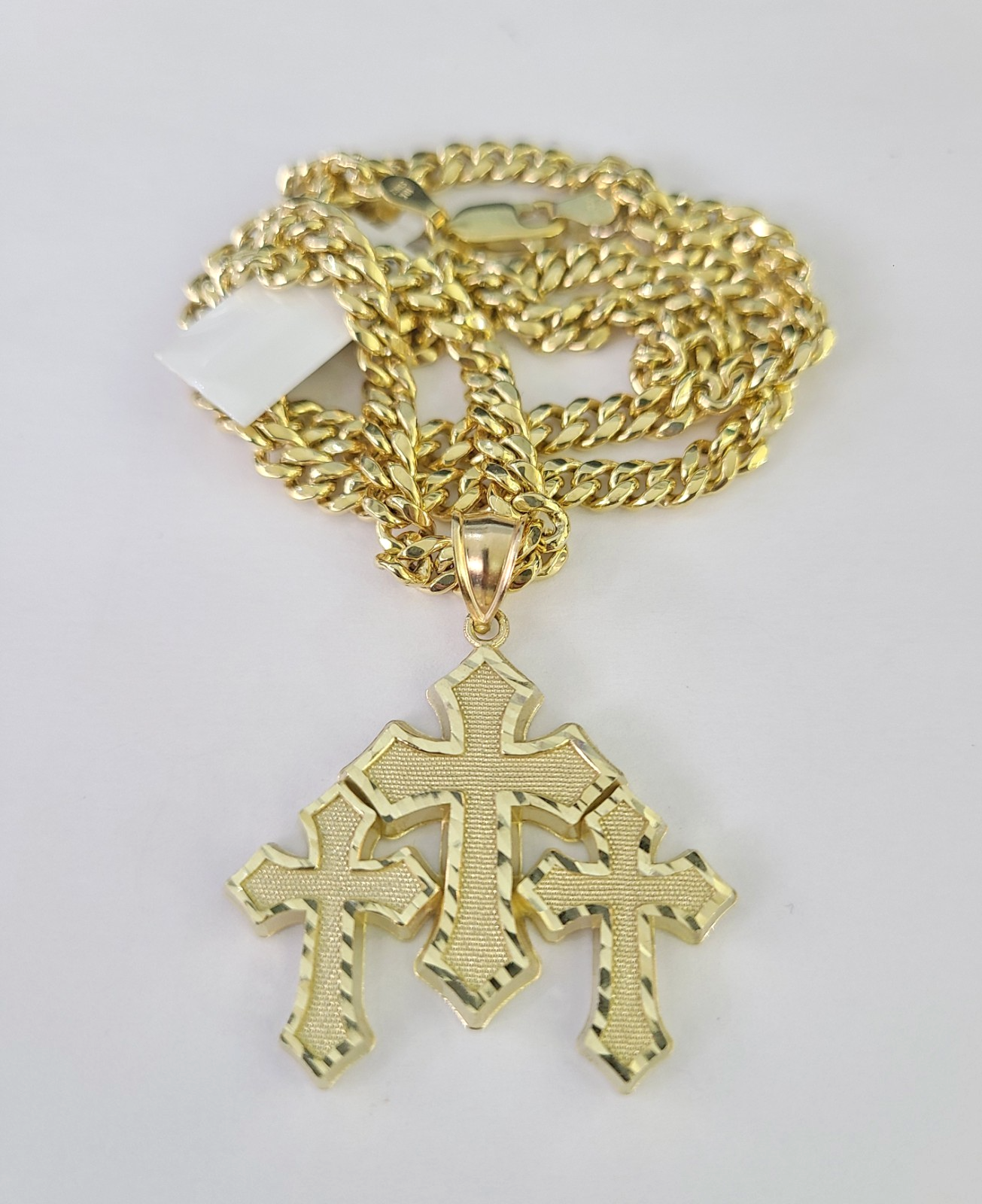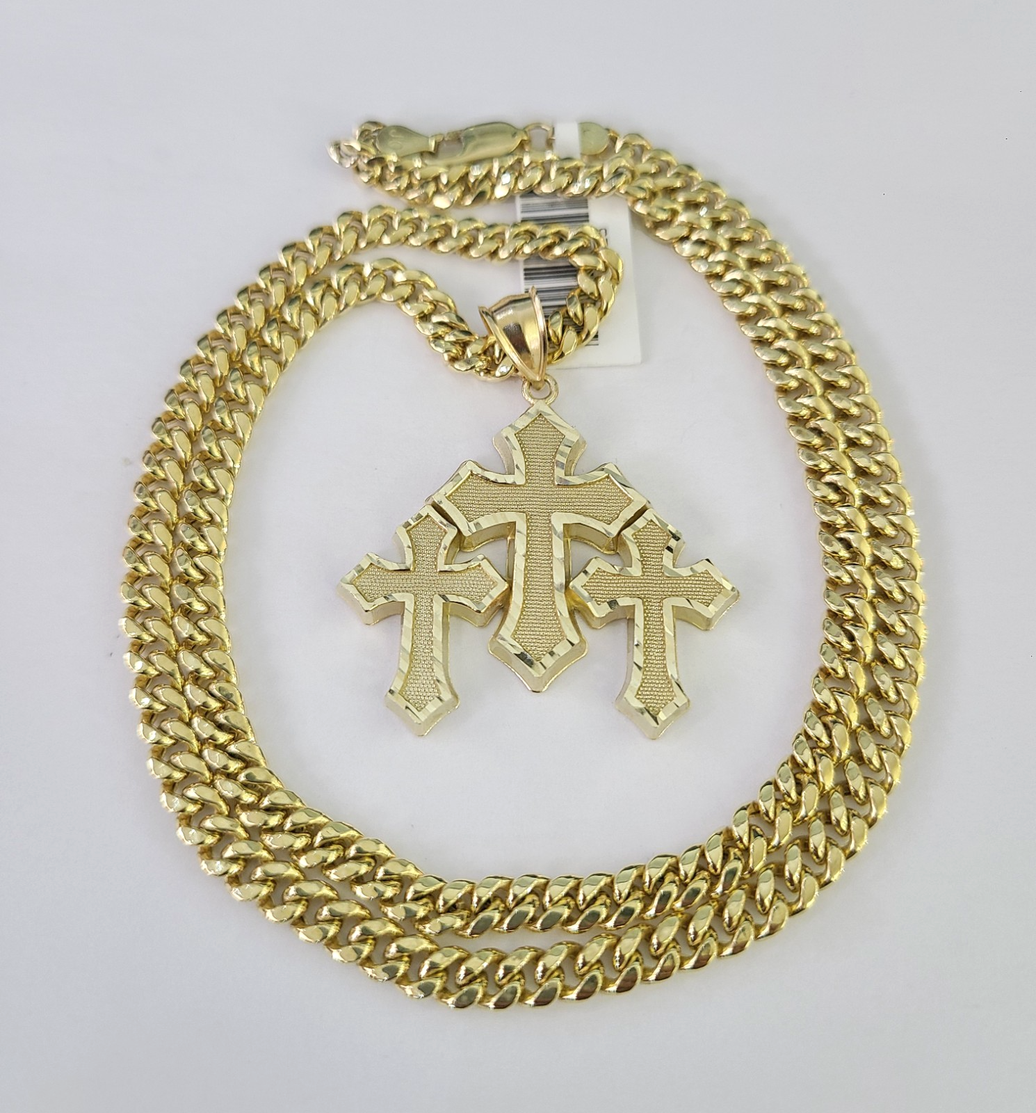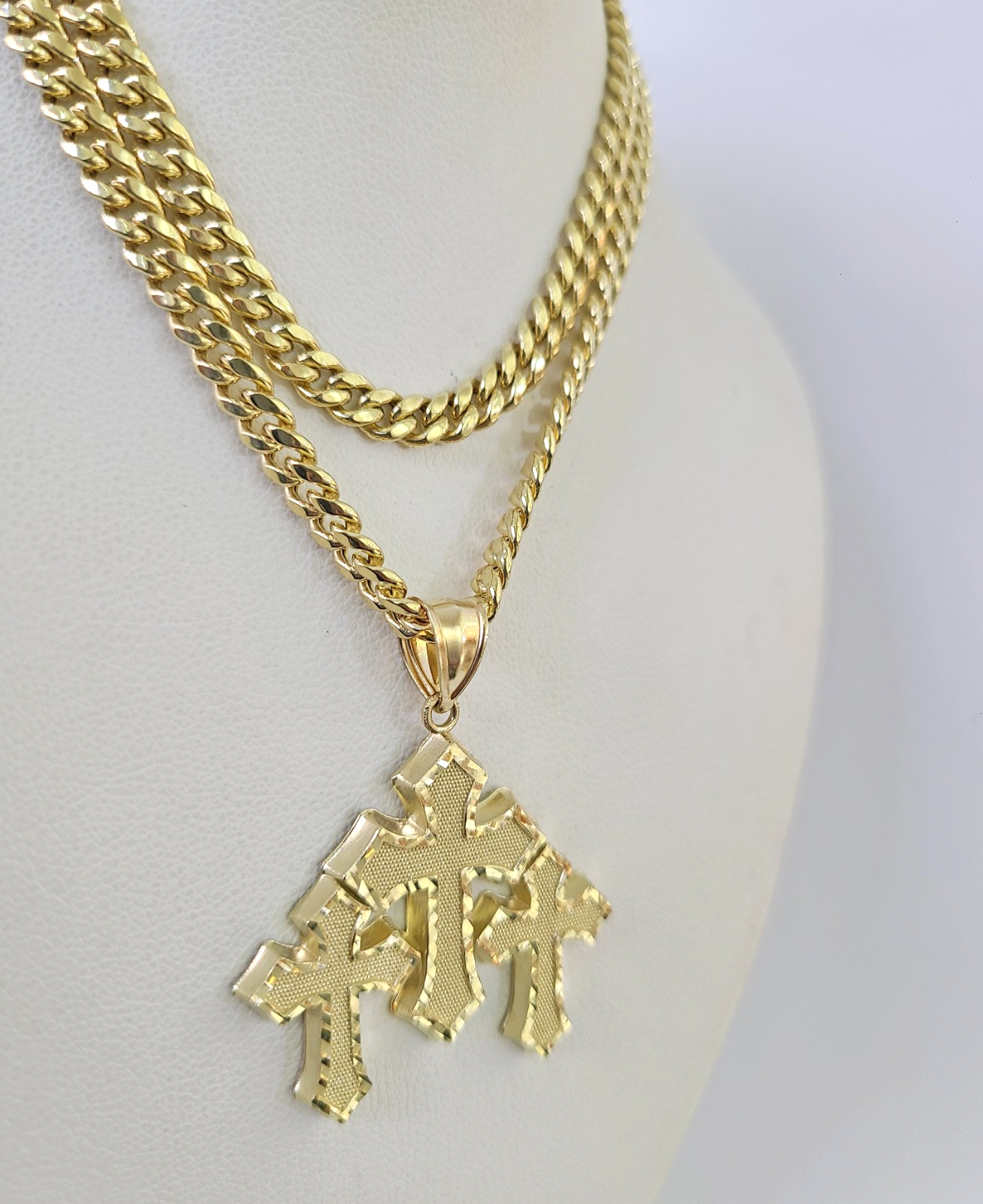 10kt Gold Miami Cuban Chain Jesus Triple Cross Charm Pendant 5mm 18-28 Inch Necklace SALE