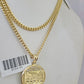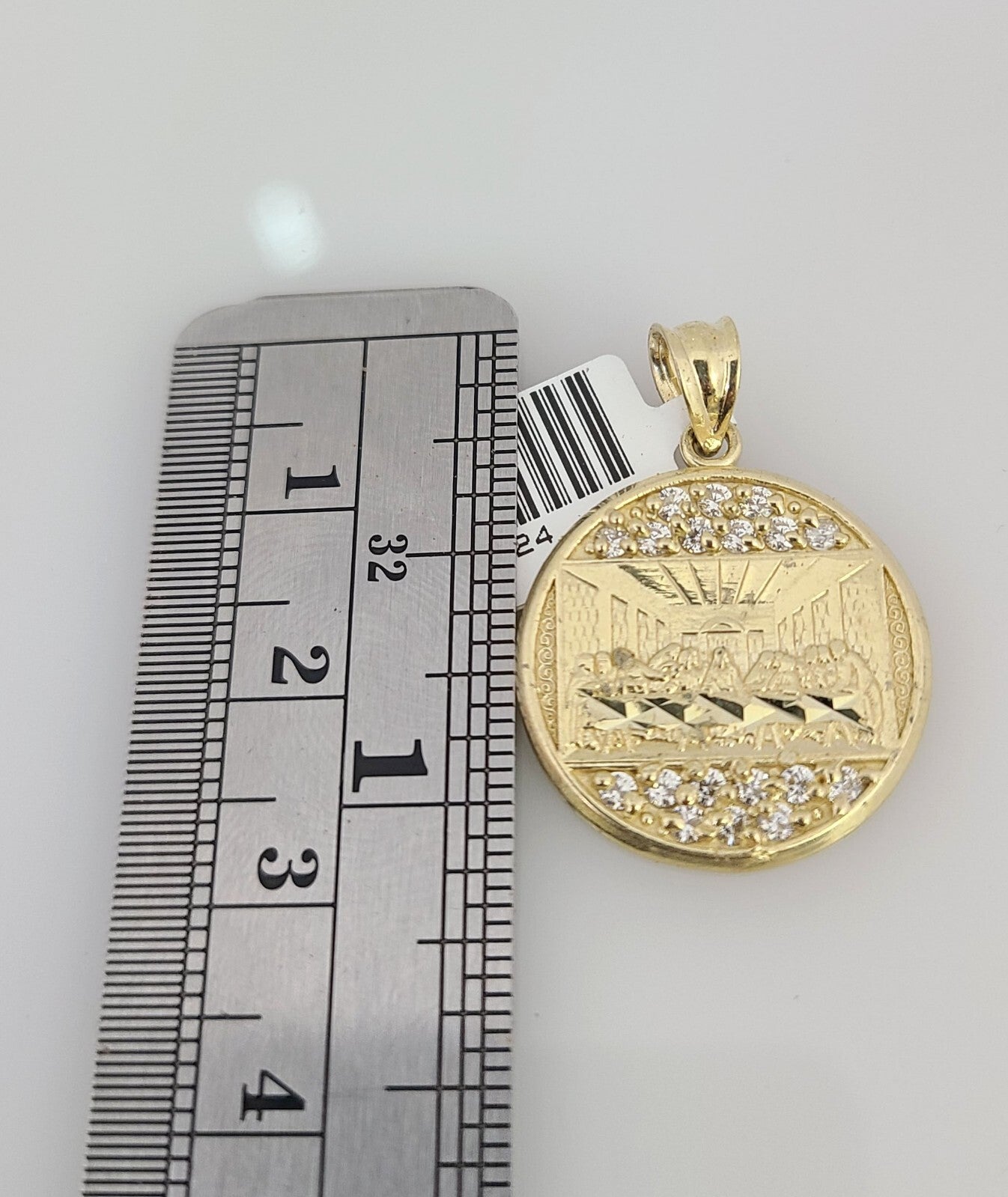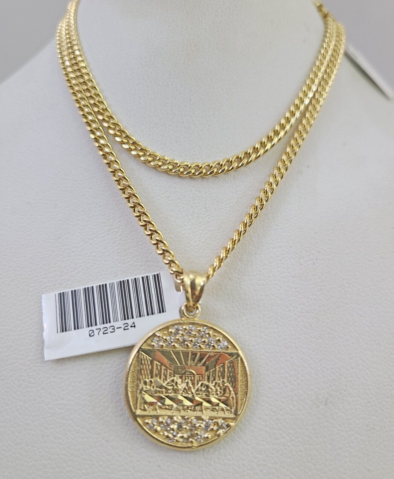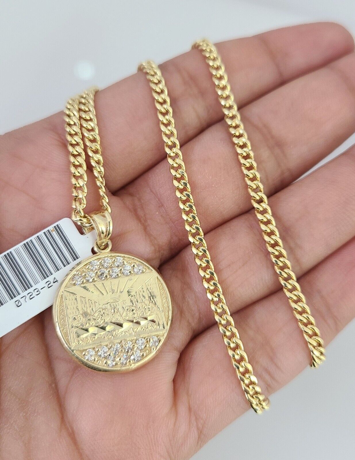 10k Gold Miami Cuban Chain Last Supper Charm Pendant 3mm 18-28 Inch Necklace Set