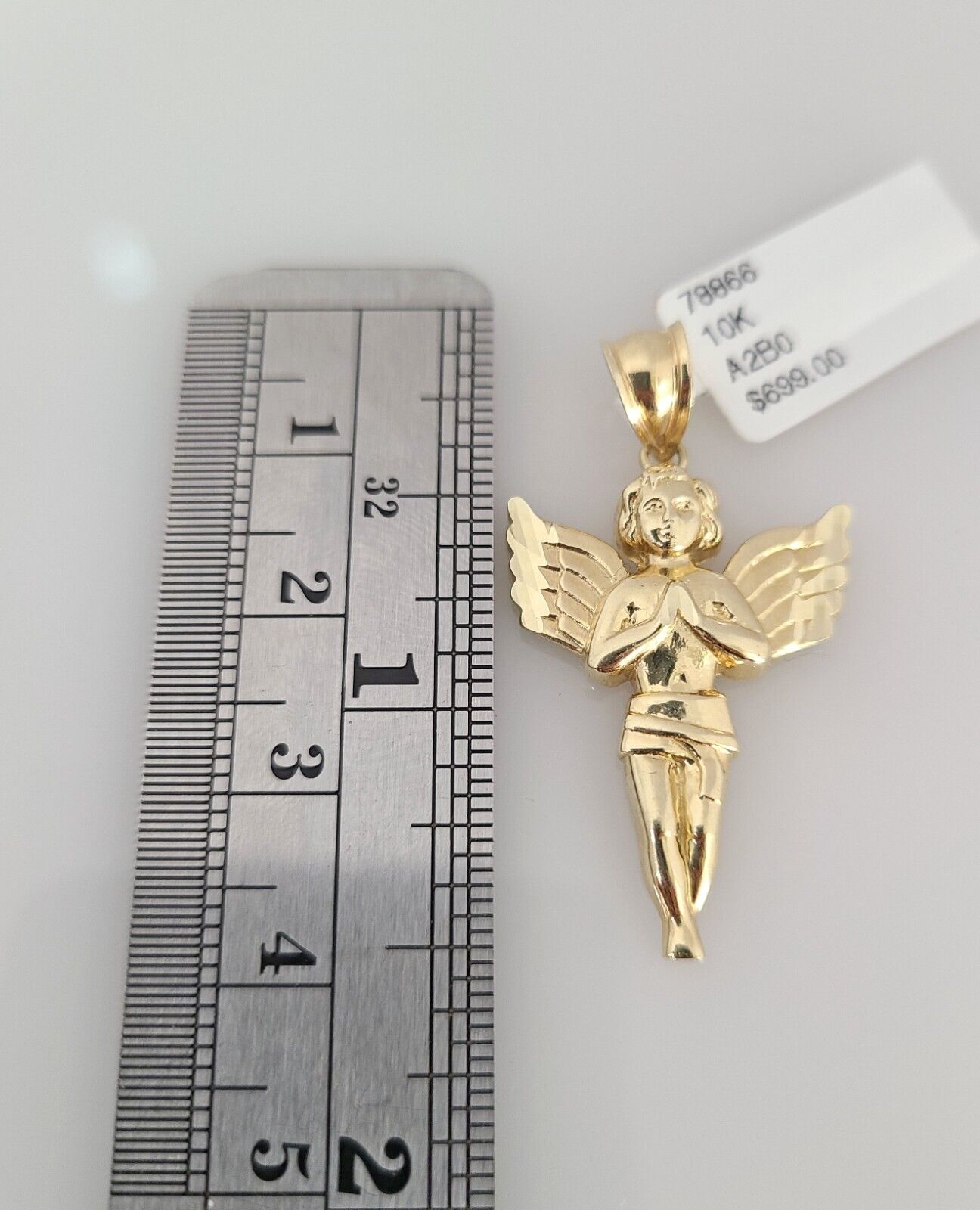 Genuine 10k Yellow Gold Miami Cuban Necklace 3mm Chain With Praying Angel Charm. The Various length of the Chain are 18"-28" with Praying Angel Charm. The pendants are unique in design and considered durable too. If you are not happy with the way it looks or feels, we do offer 30 - Days FREE Return shipping. Contact us for more information.