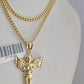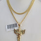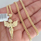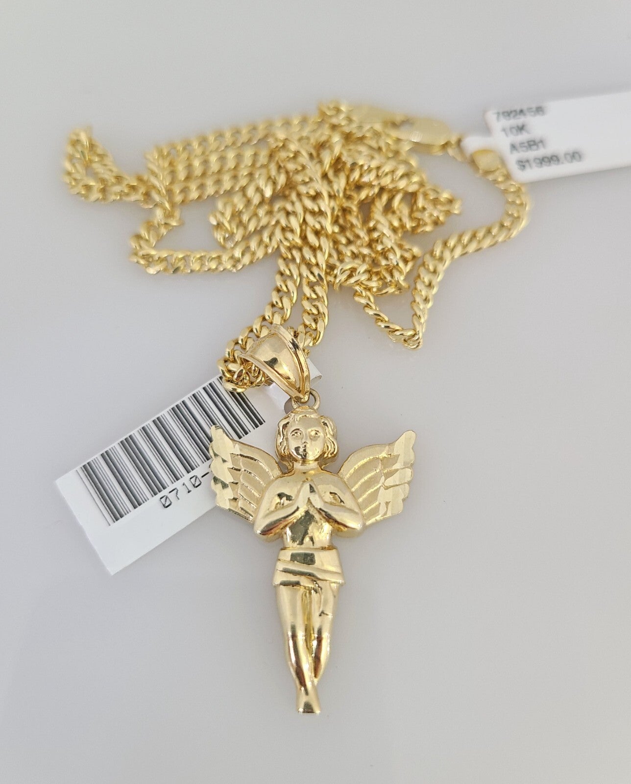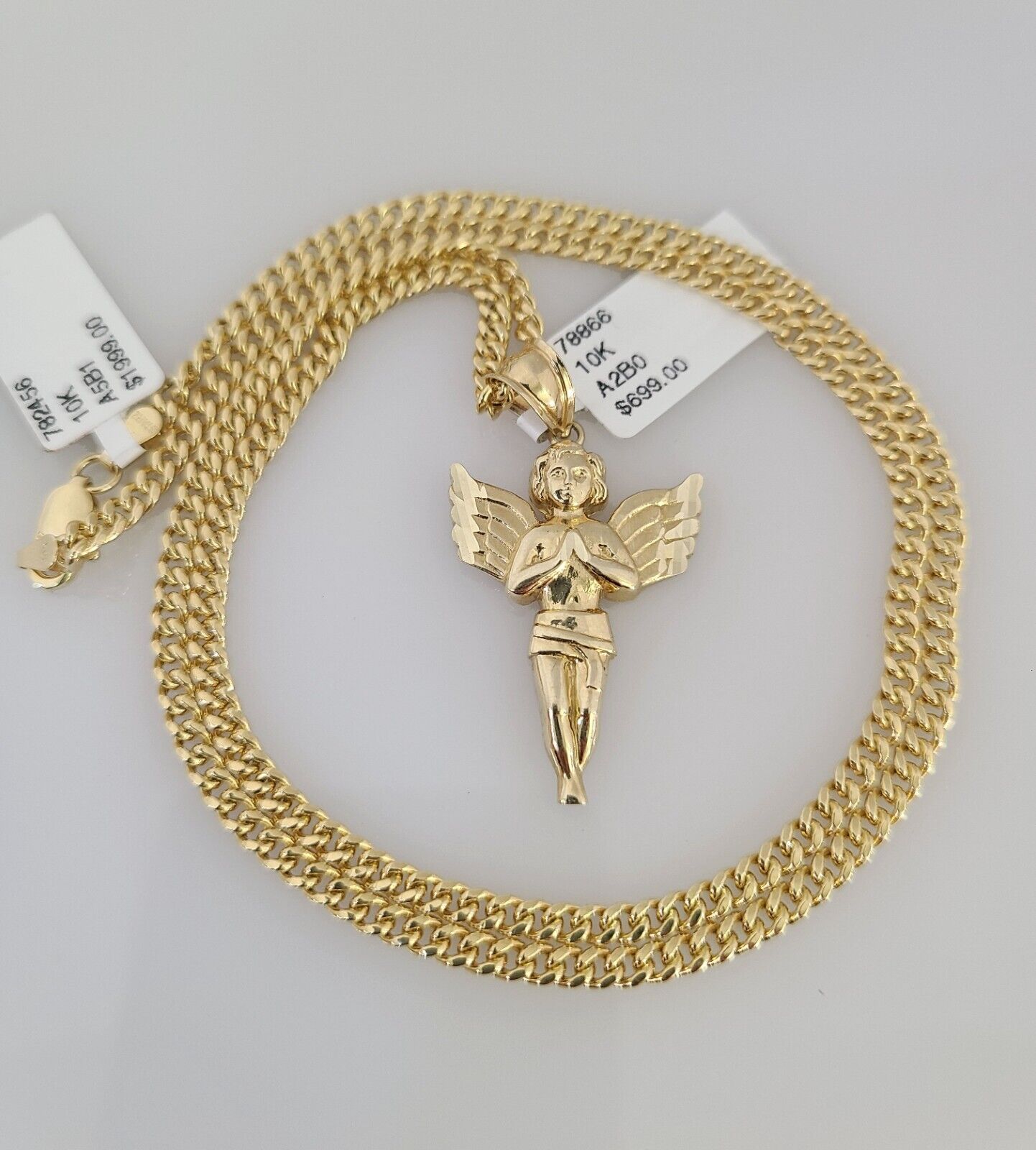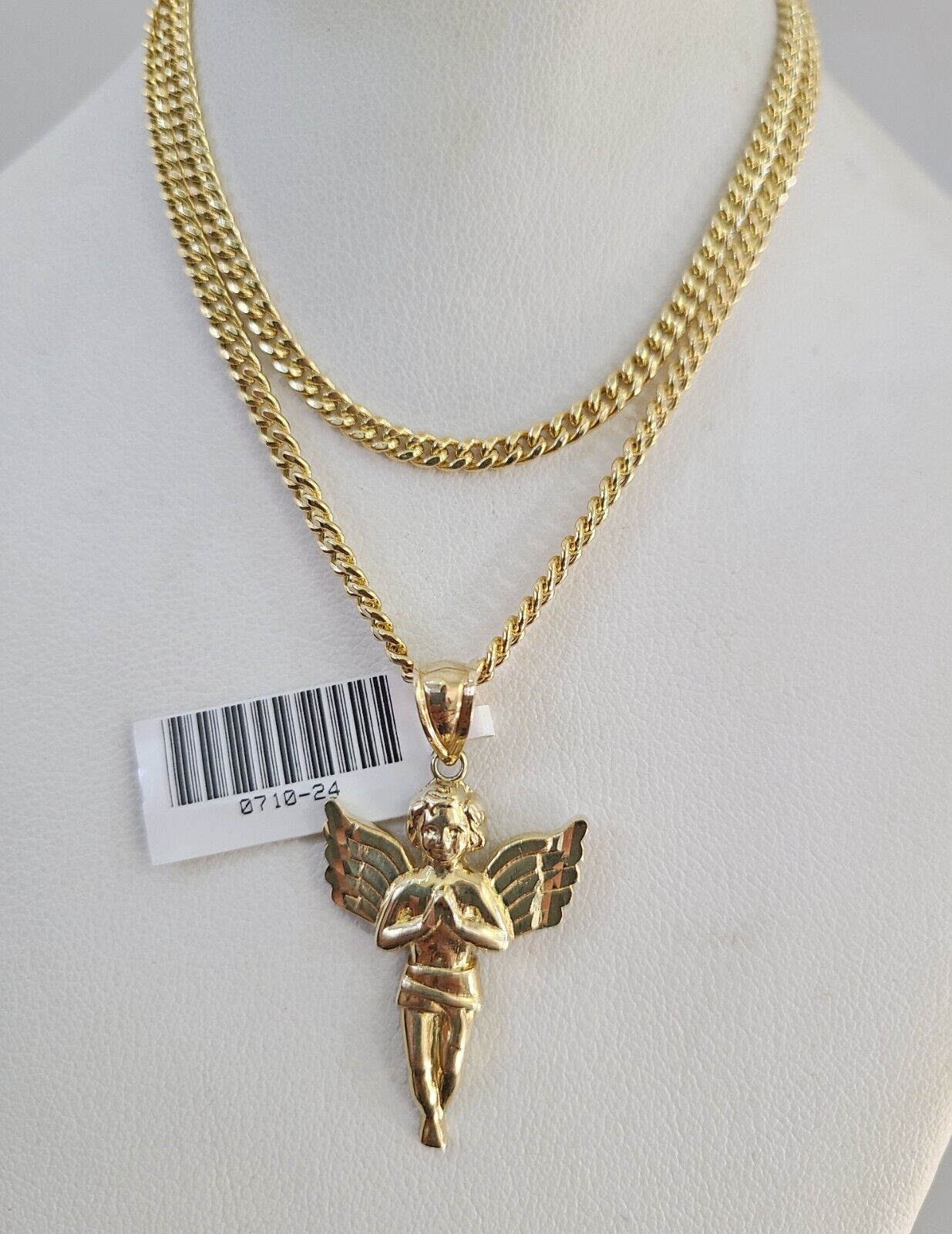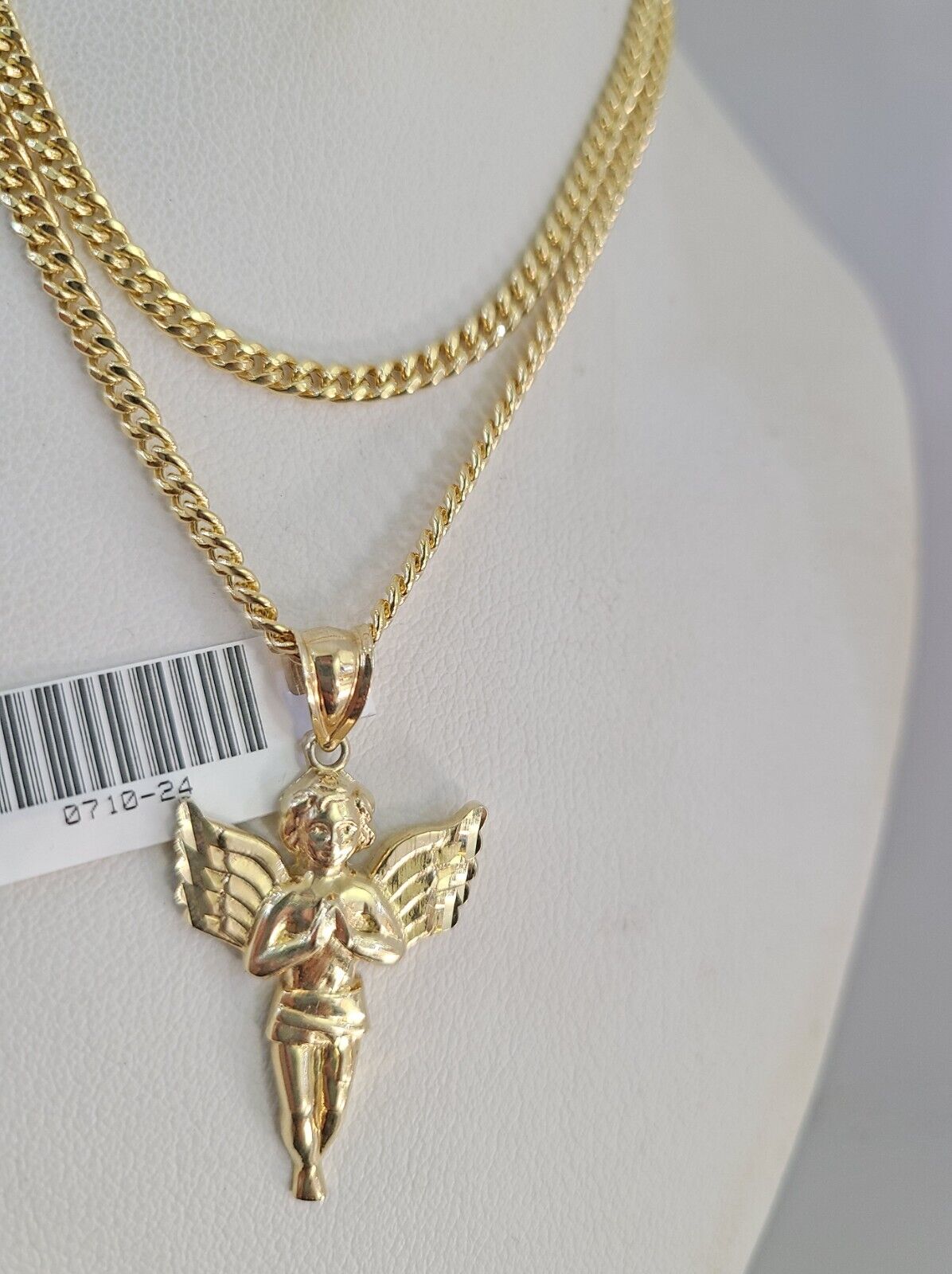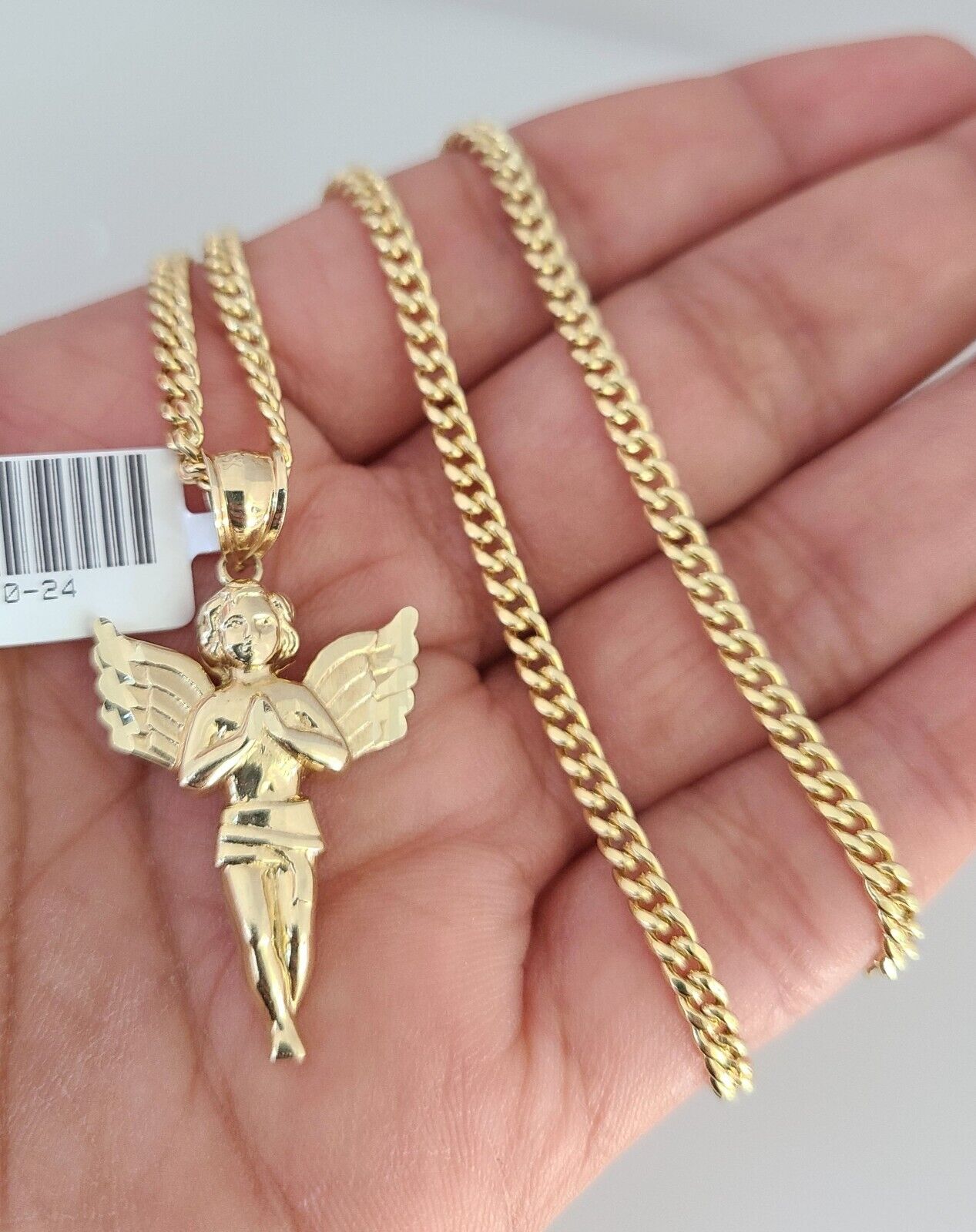10kt Gold Miami Cuban Chain Praying Angel Charm Pendant 3mm 18-28 Inch Necklace SALE