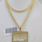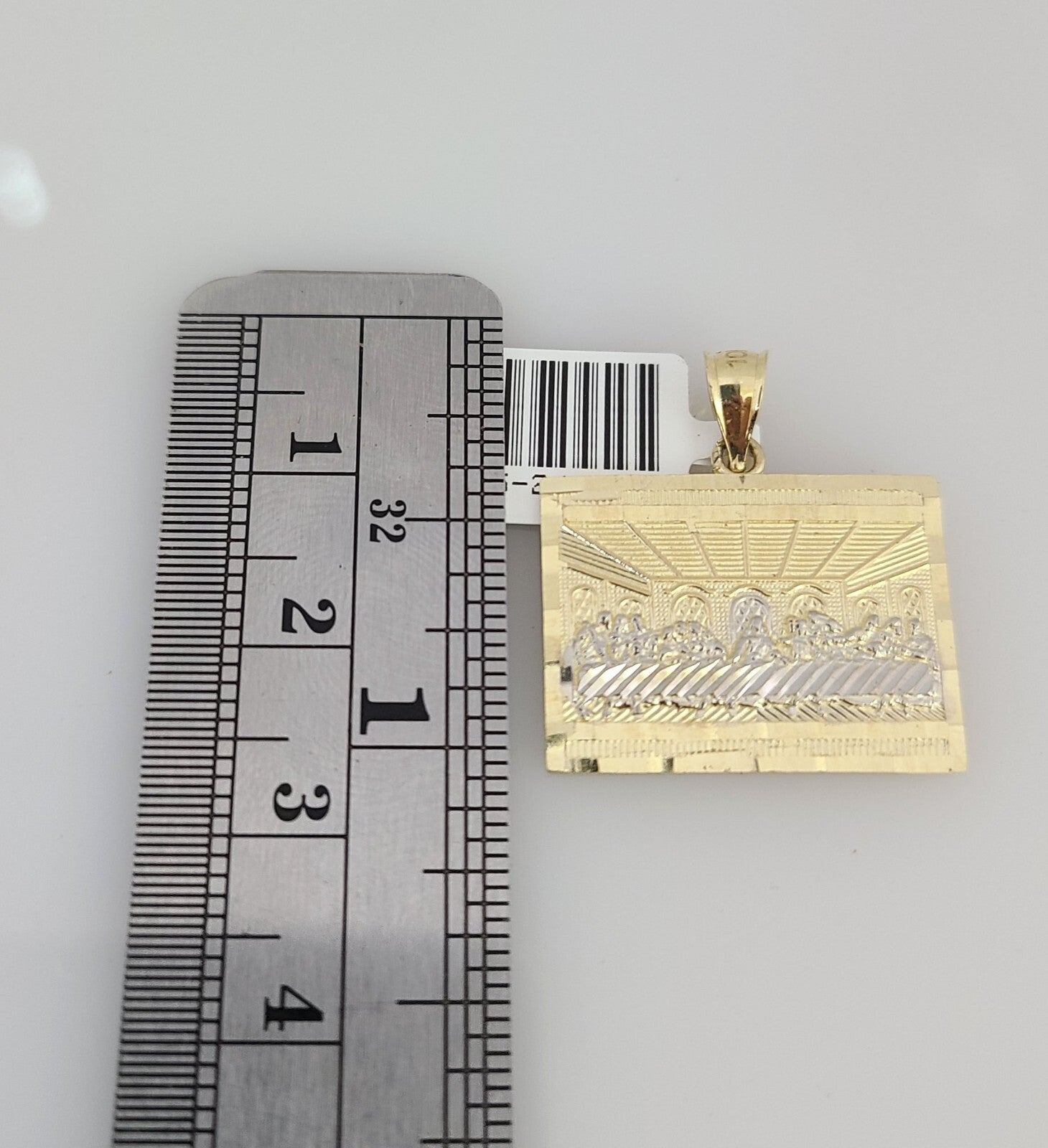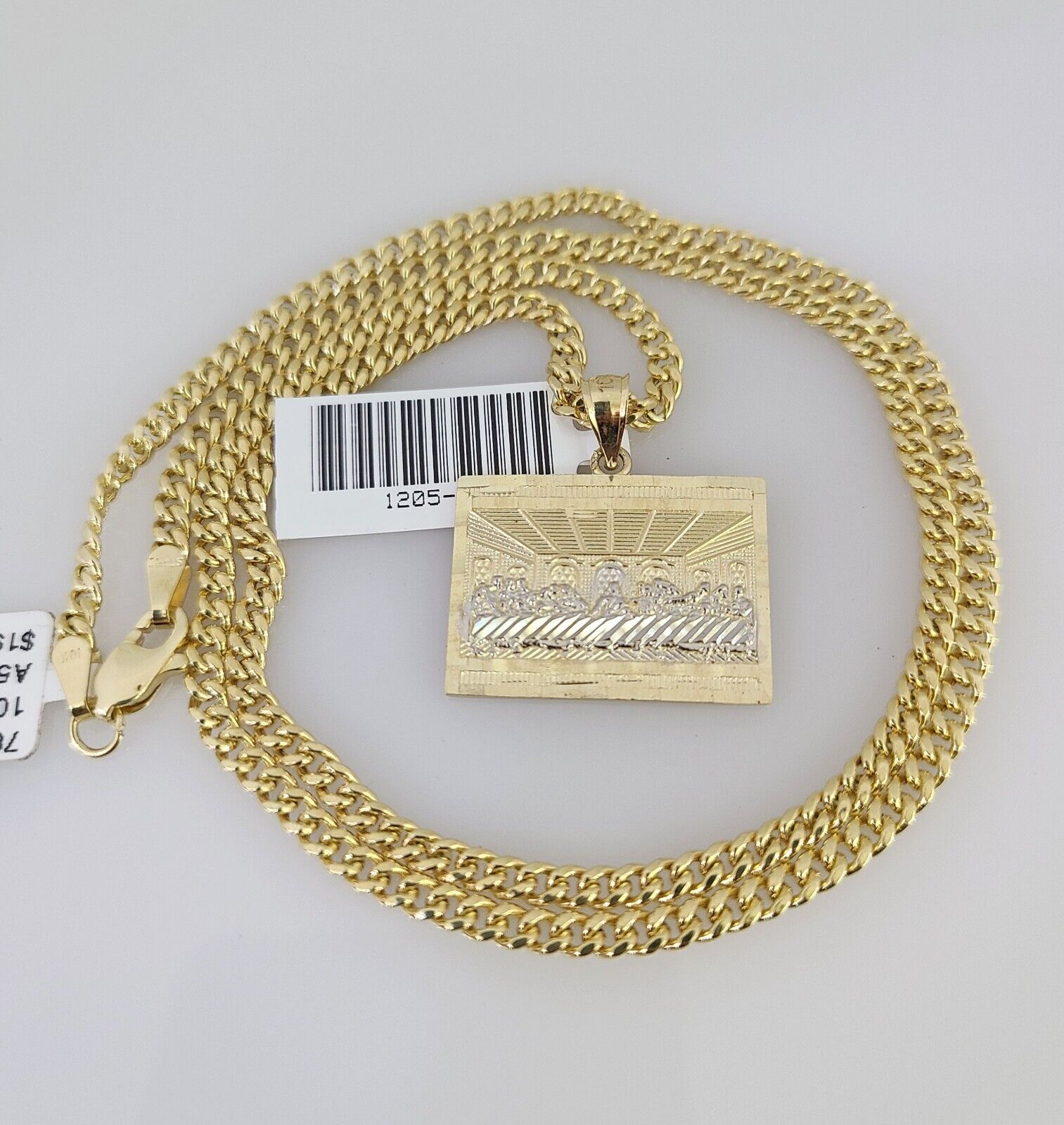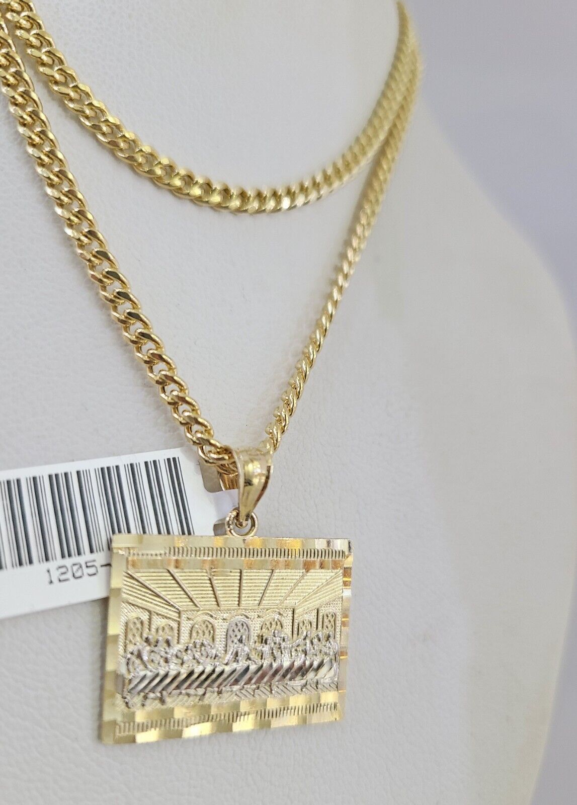 10k Gold Miami Cuban Necklace Last Supper Pendant Charm 3mm 18-28 Inch Chain Set