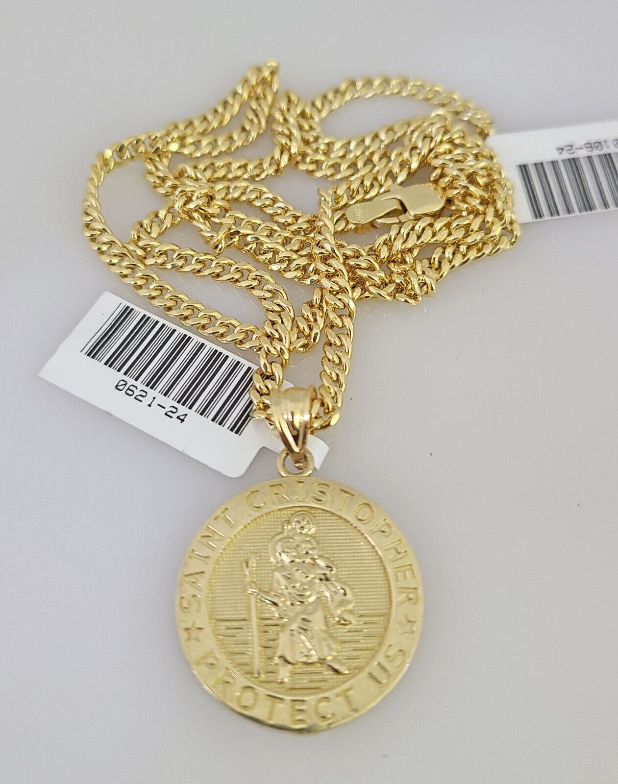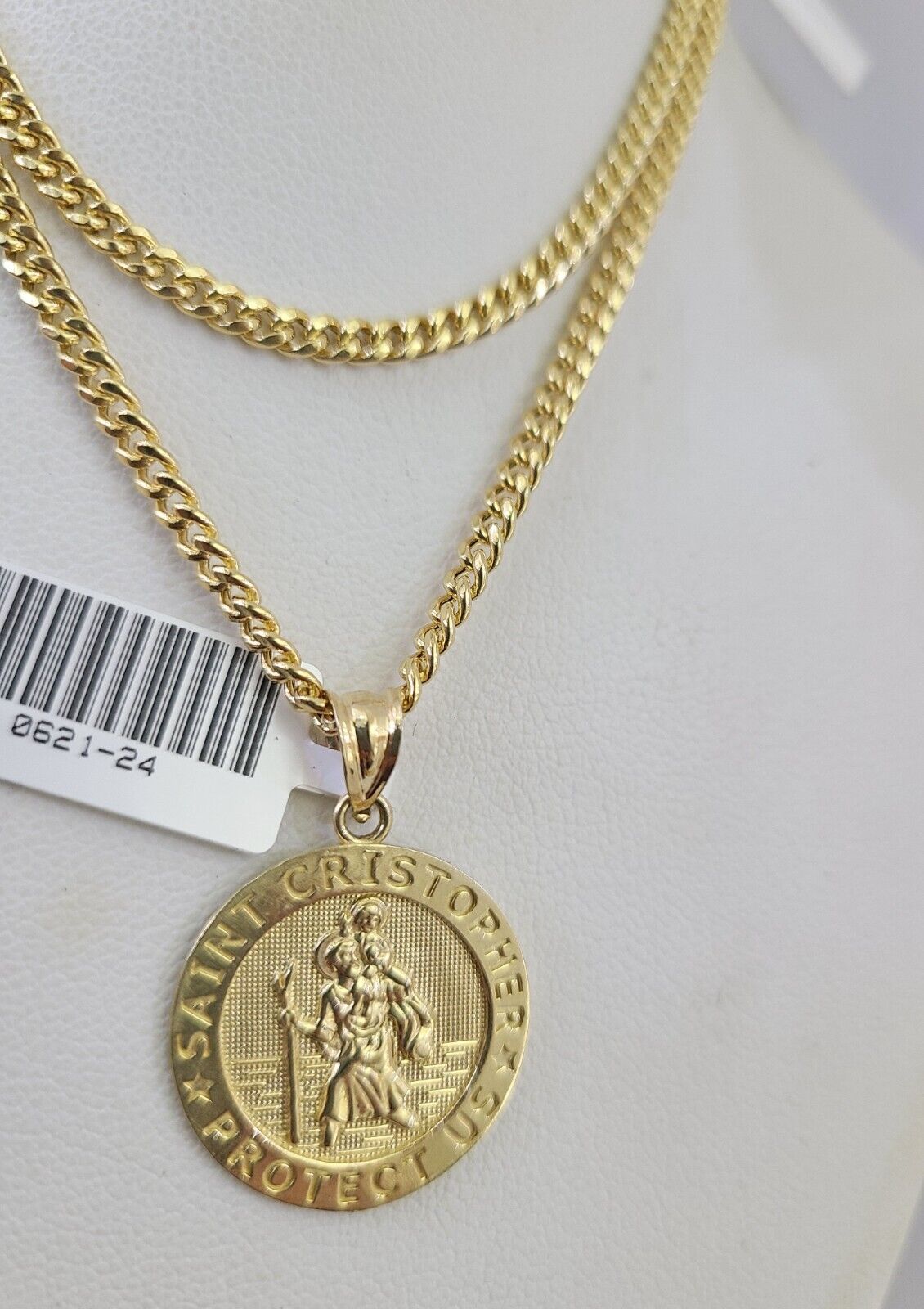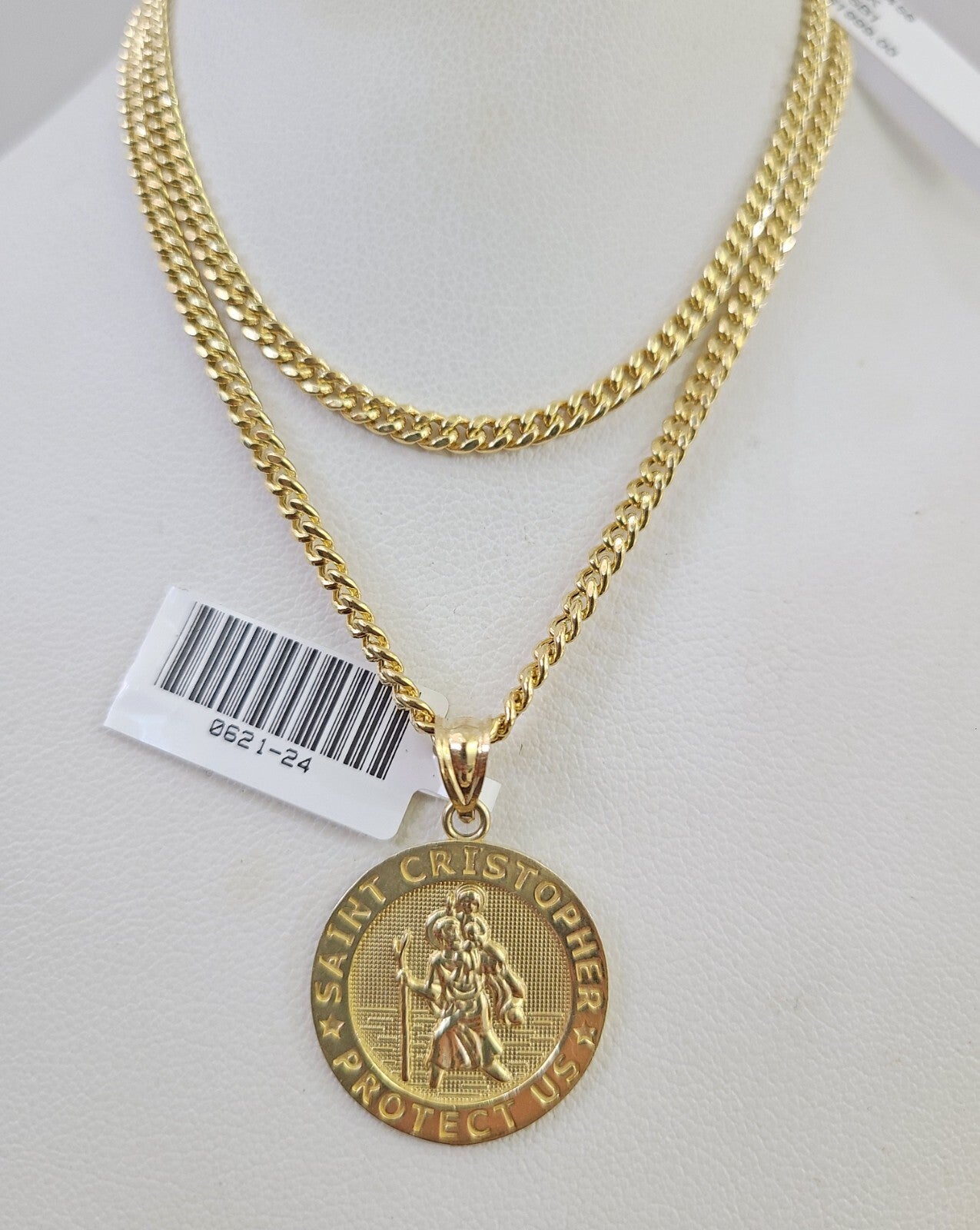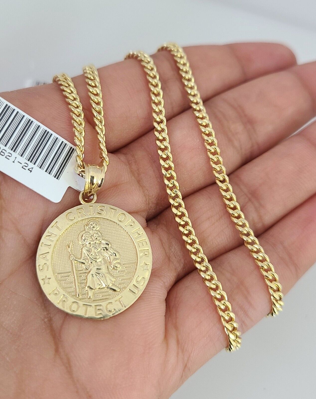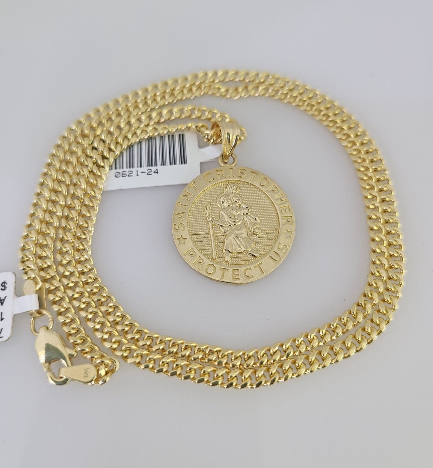 Genuine 10k Yellow Gold Miami Cuban Necklace 3mm Chain With Saint Christopher Charm. The Various length of the Chain are 18"-28" with Saint Christopher Charm. The pendants are unique in design and considered durable too. If you are not happy with the way it looks or feels, we do offer 30 - Days FREE Return shipping. Contact us for more information.